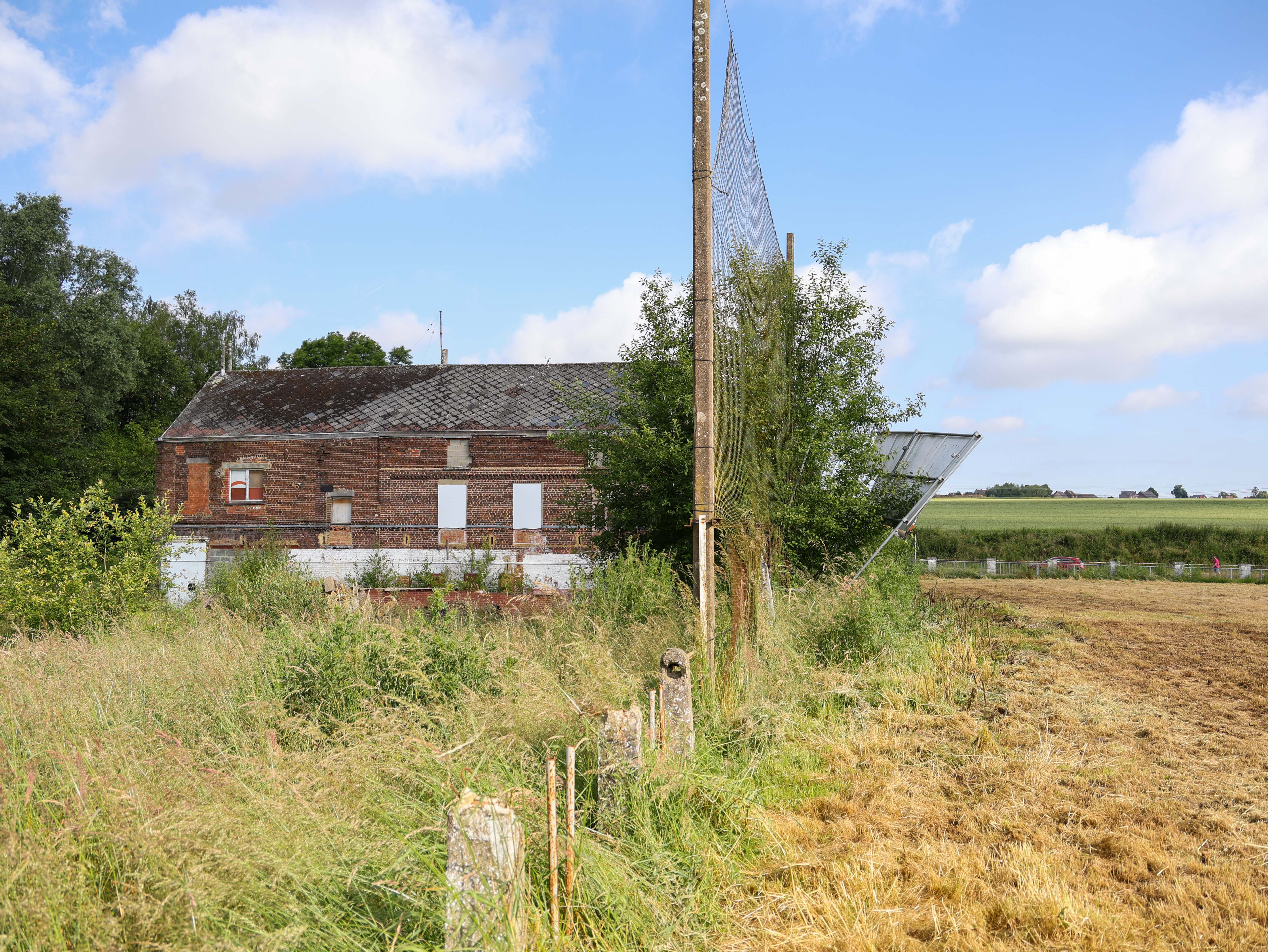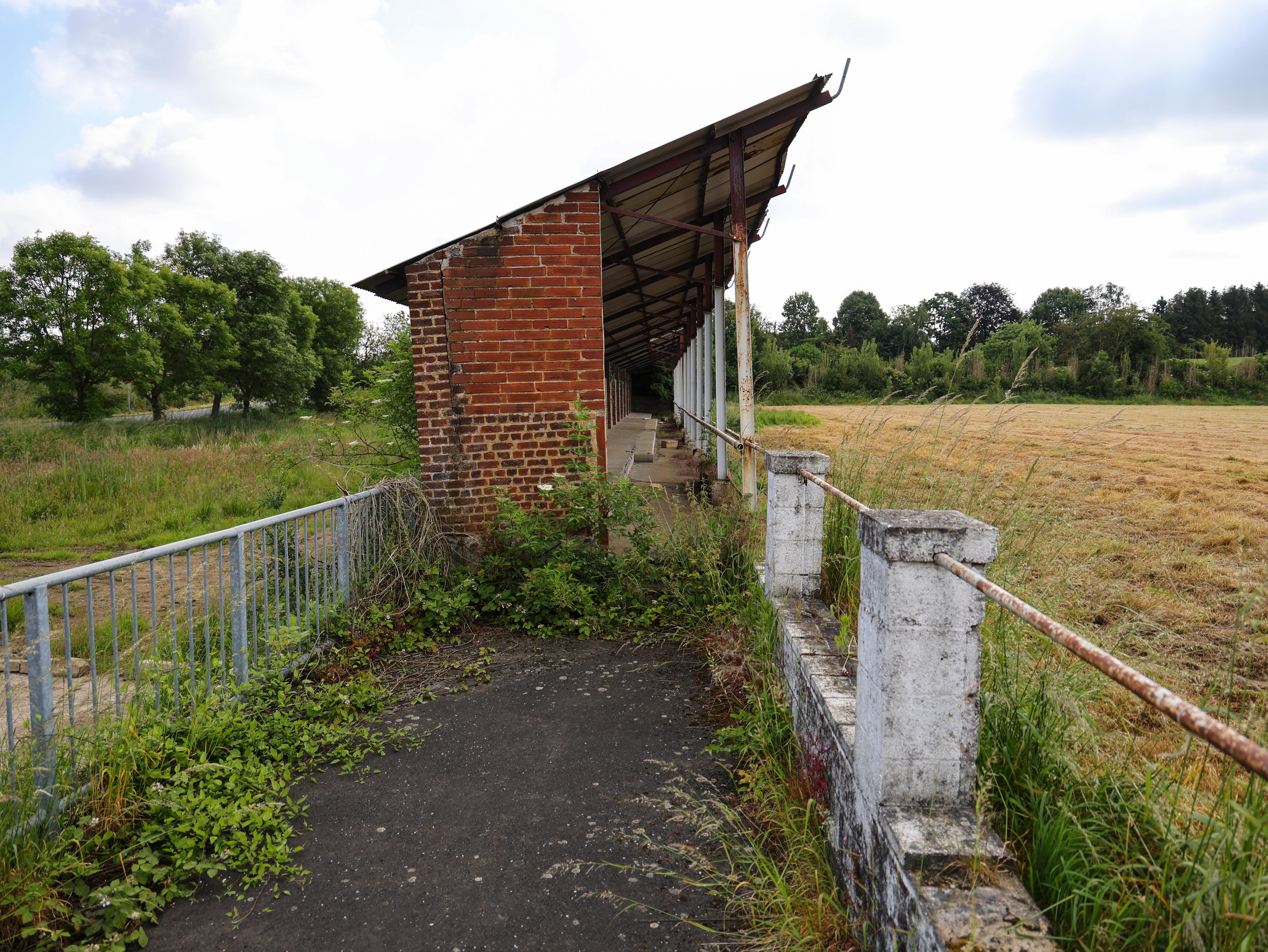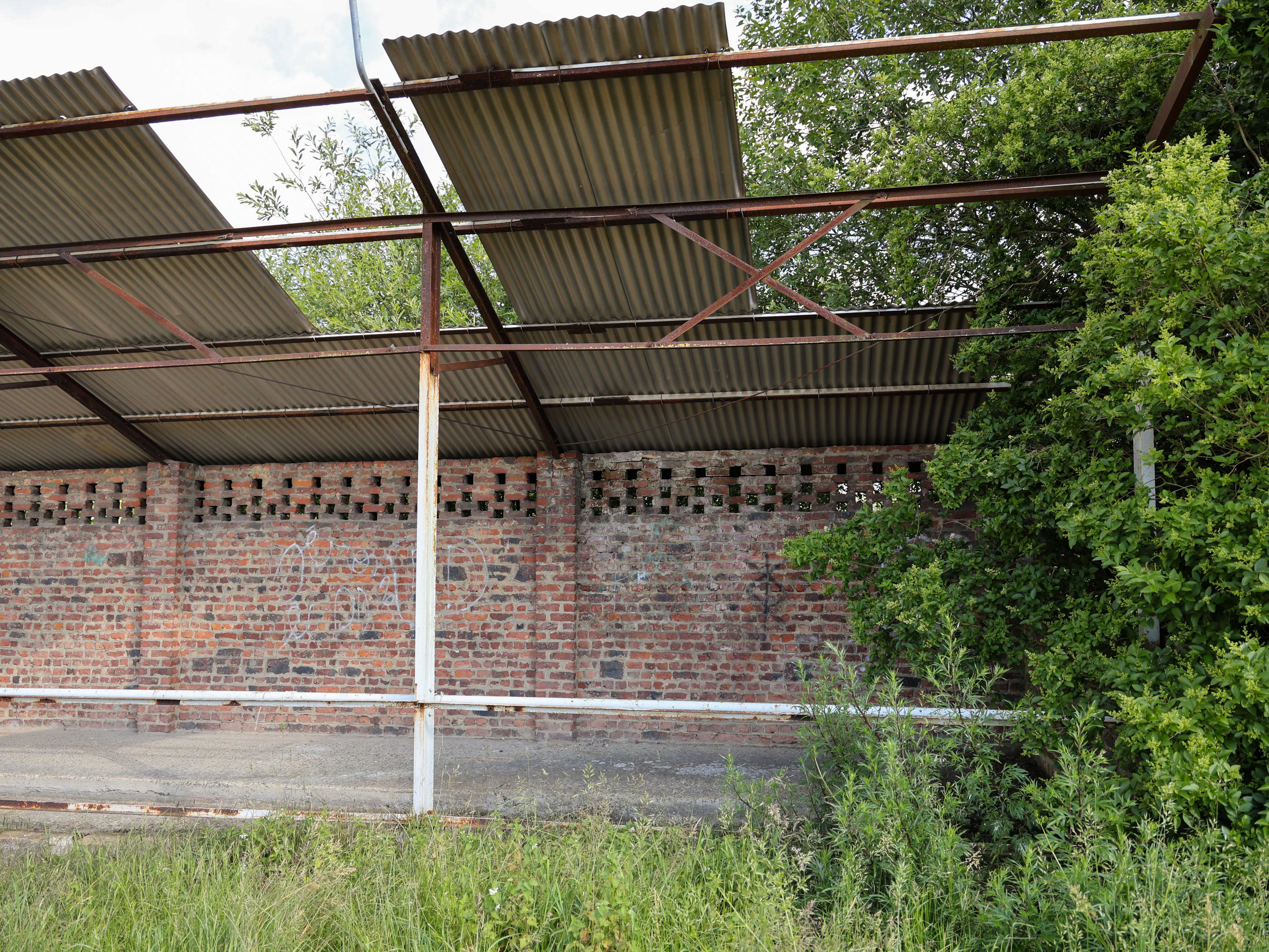 Bij de ingang ligt een smal pad van zwart asfalt, met een verweerde ijzeren reling. De toegang tot wat ooit het heiligdom was van Royal Stade Brainois. Nu leidt het pad alleen nog maar terug in de tijd, voor wie over het hek durft te klimmen.