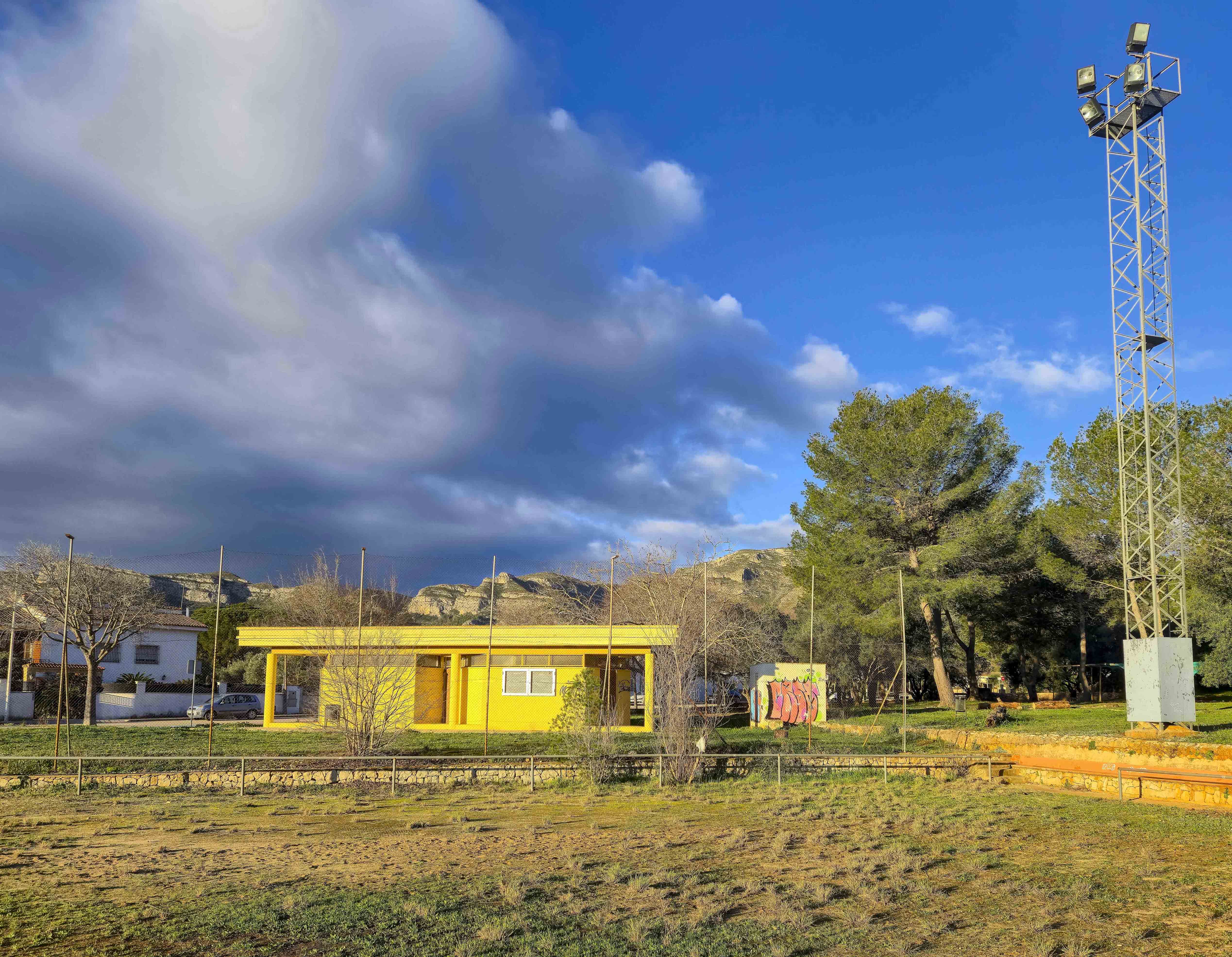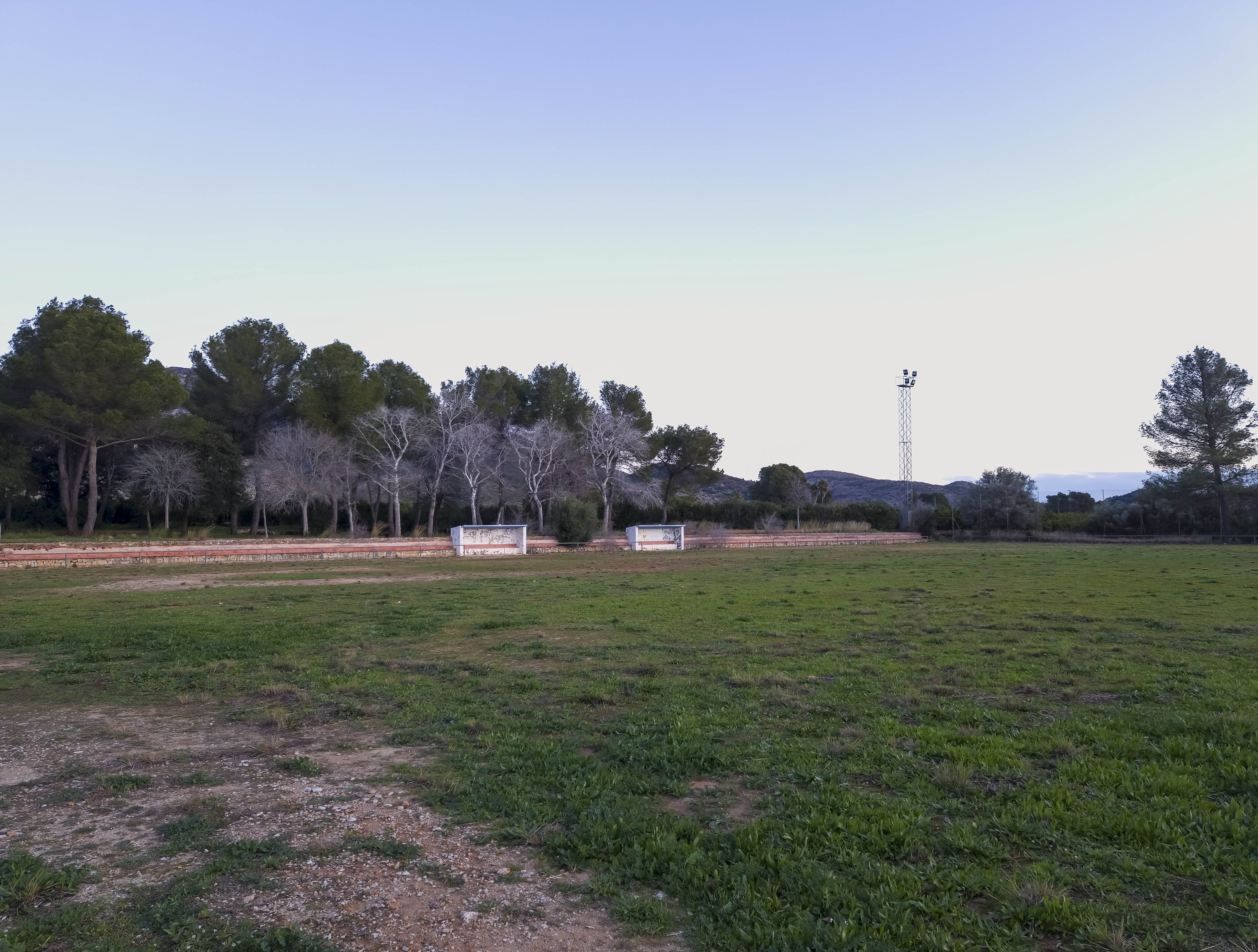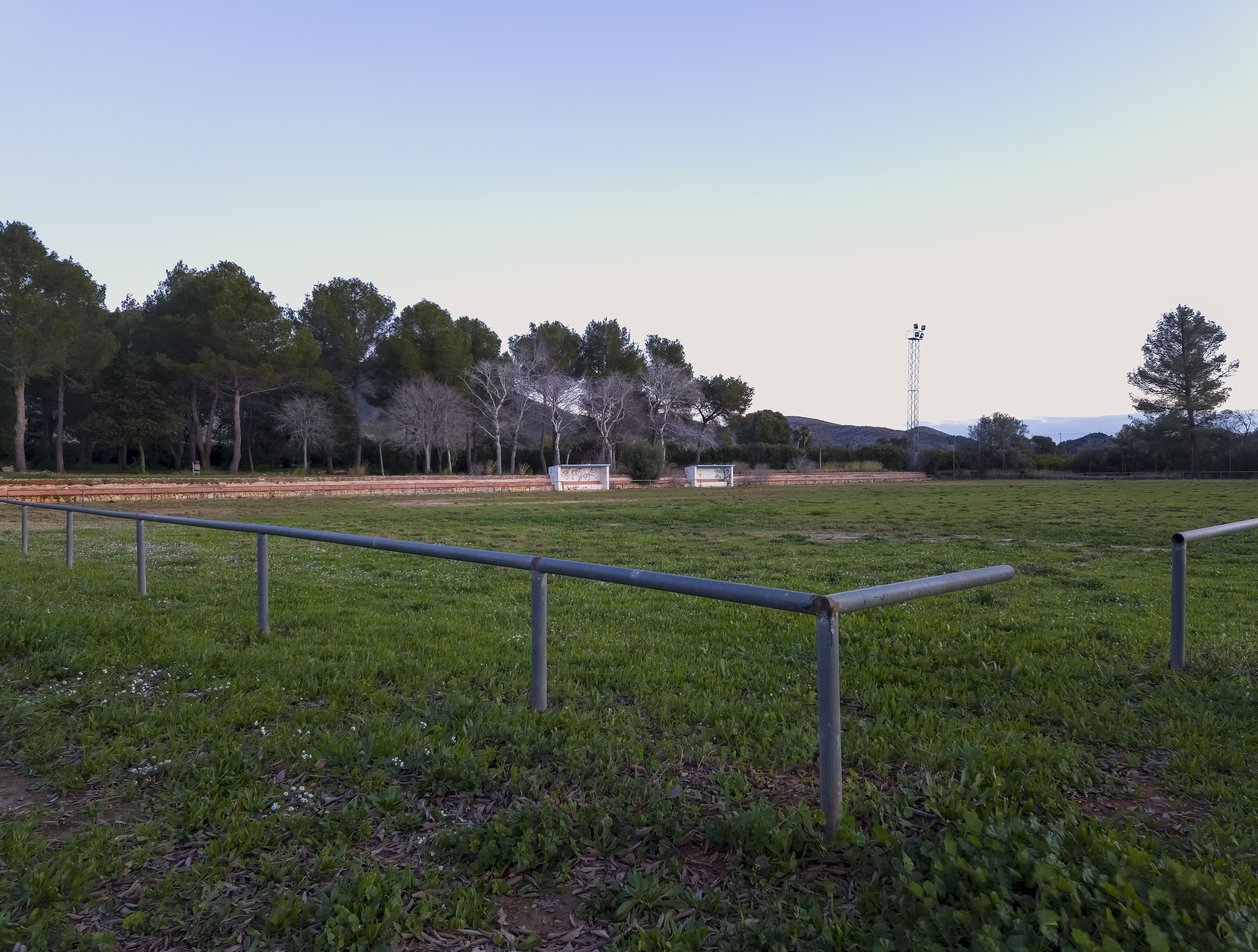 Camp de Futbol de MarxuqueraOnder de schaduw van sinaasappelbomen ligt een veld, eenzaam en verlaten. Het ademt alsof het ooit iets groots heeft meegemaakt, maar nu vooral probeert niet vergeten te worden. De lijnen zijn vervaagd, het gras is moe en de lichtmasten staan erbij als wachters die hun ploeg al jaren niet meer hebben zien terugkeren.