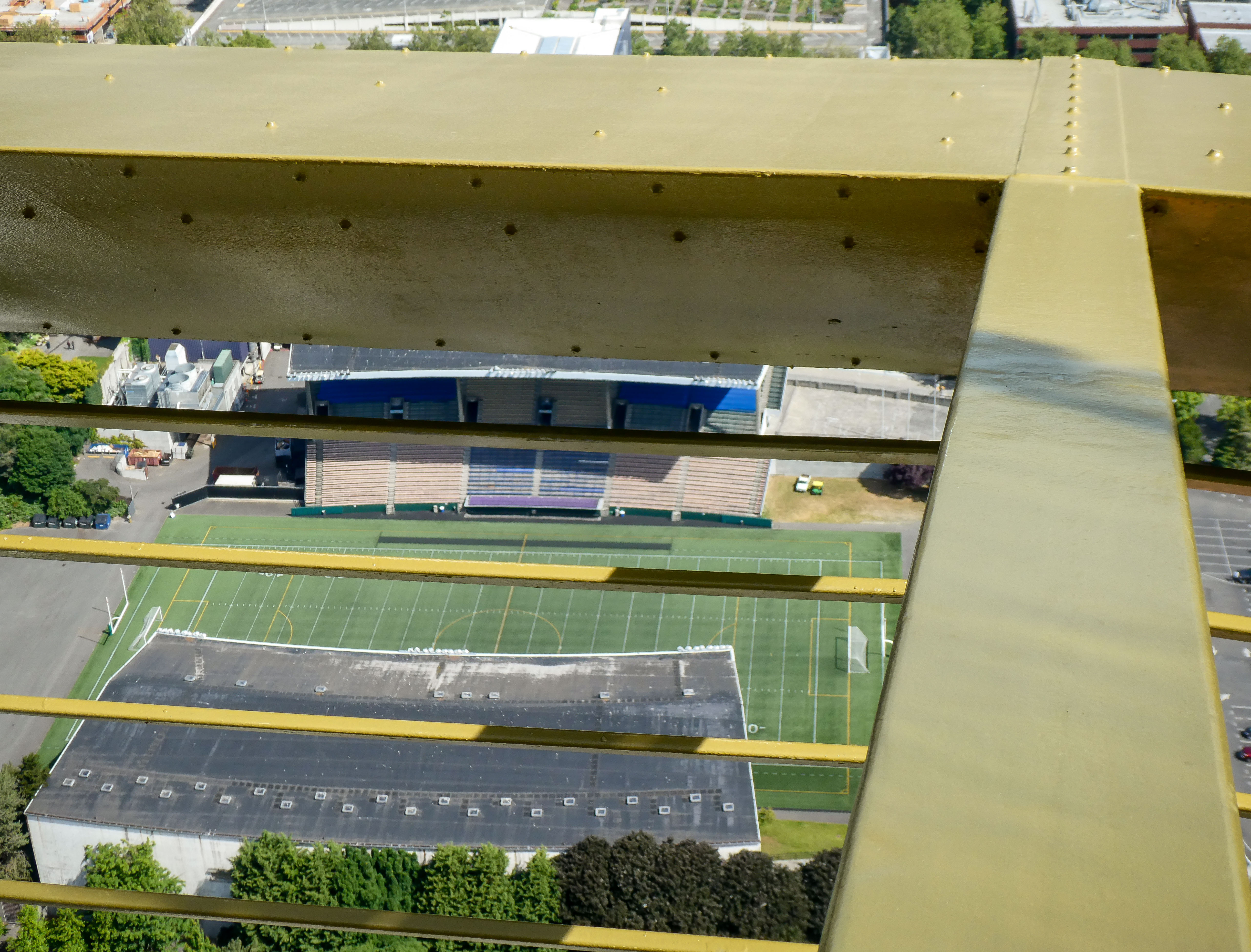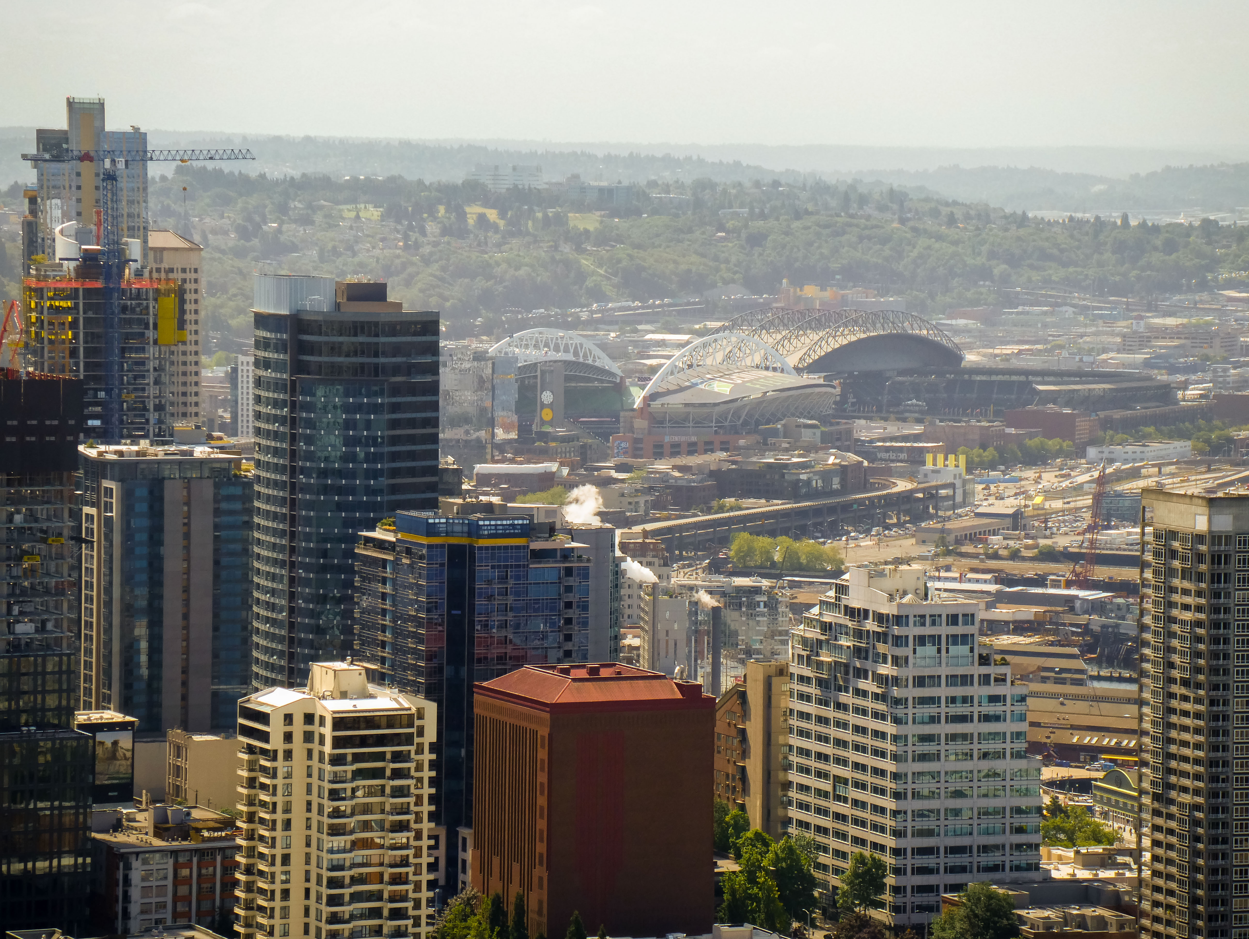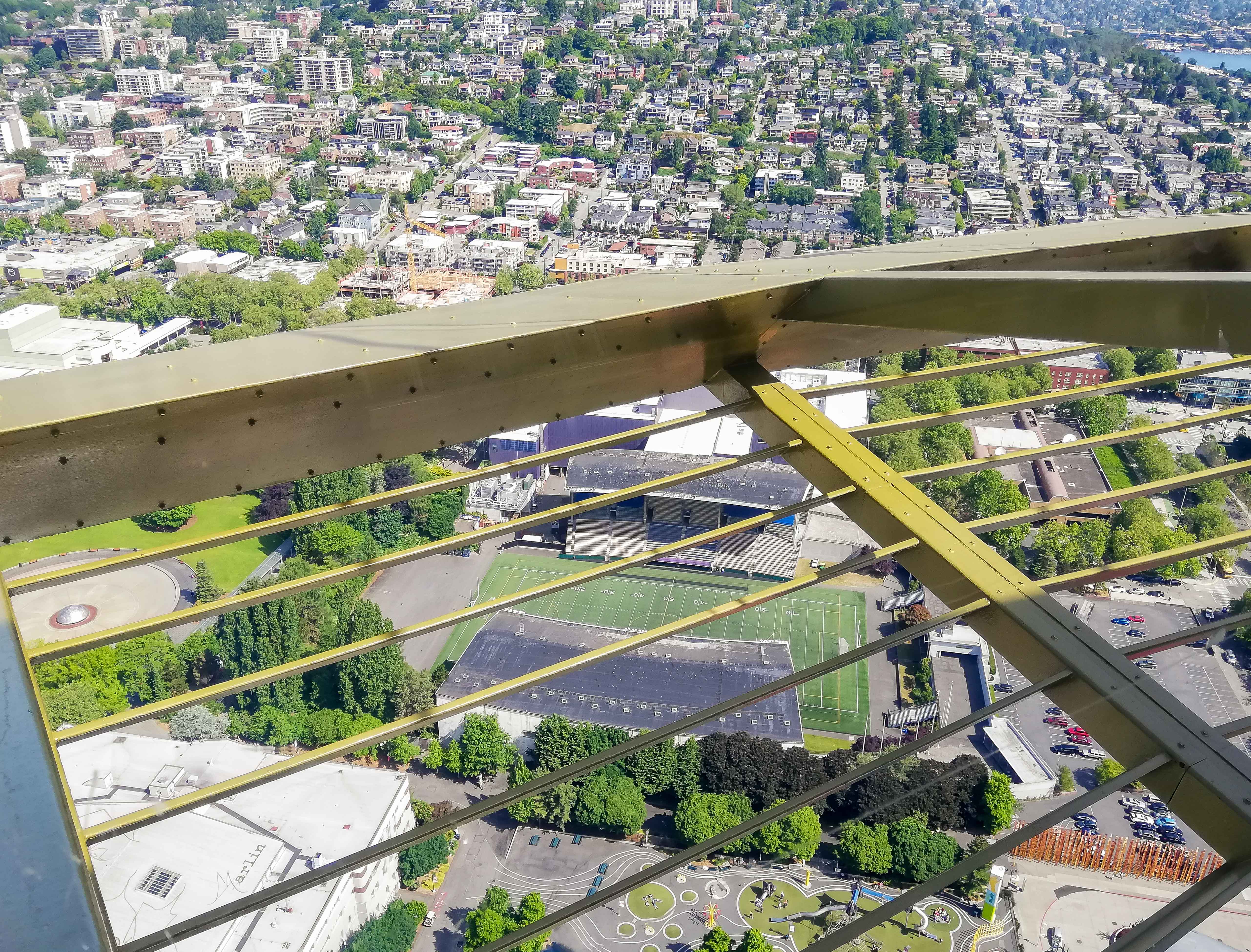 Voordat we richting de Californische kust zouden zakken, moest er eerst iets anders gebeuren. Een ritueel. Een warming-up. Stadions spotten. Seattle is daar gemaakt voor. Vanuit de Space Needle zie je het meteen: een stad die zijn sporttempels niet verstopt, maar tentoonstelt.
