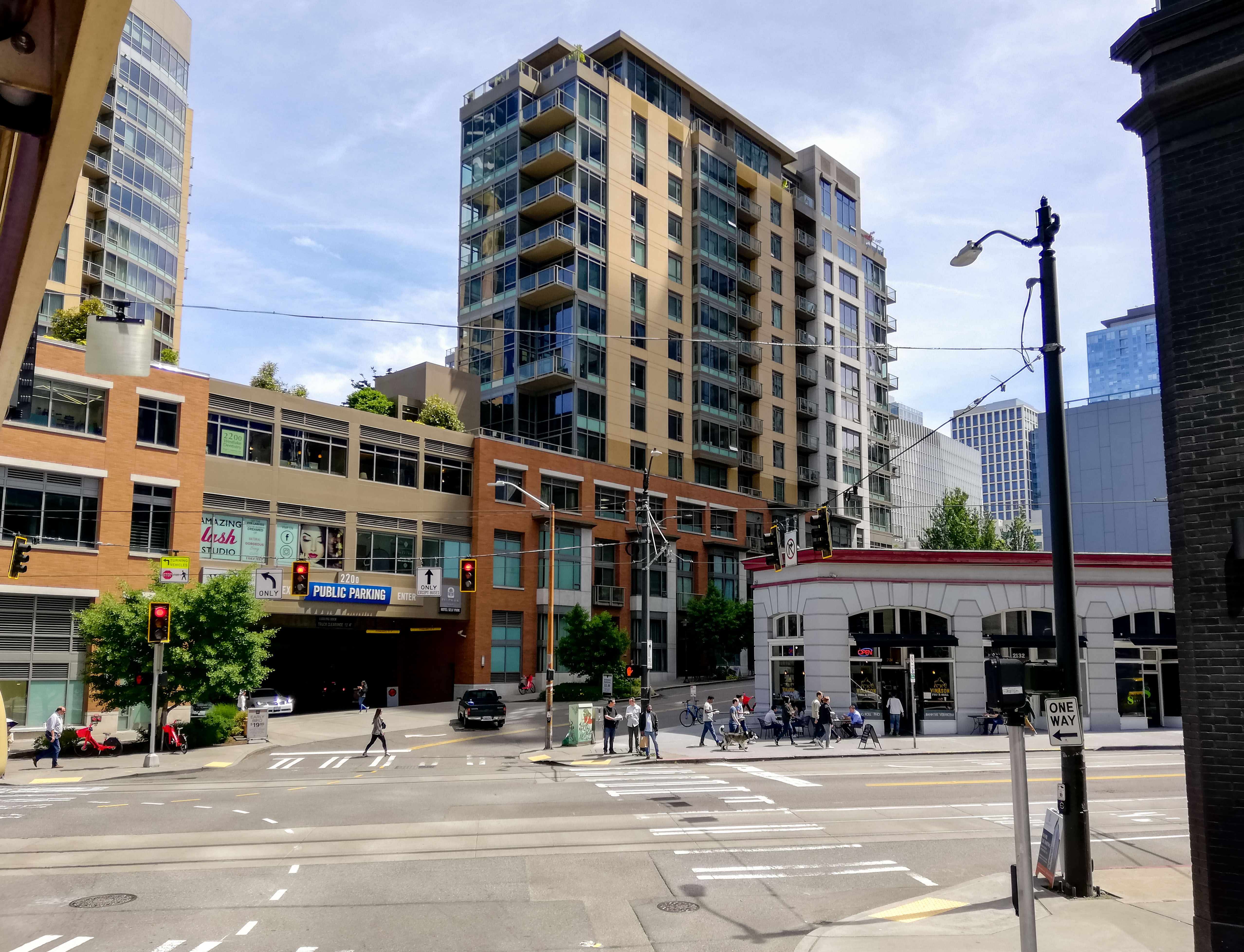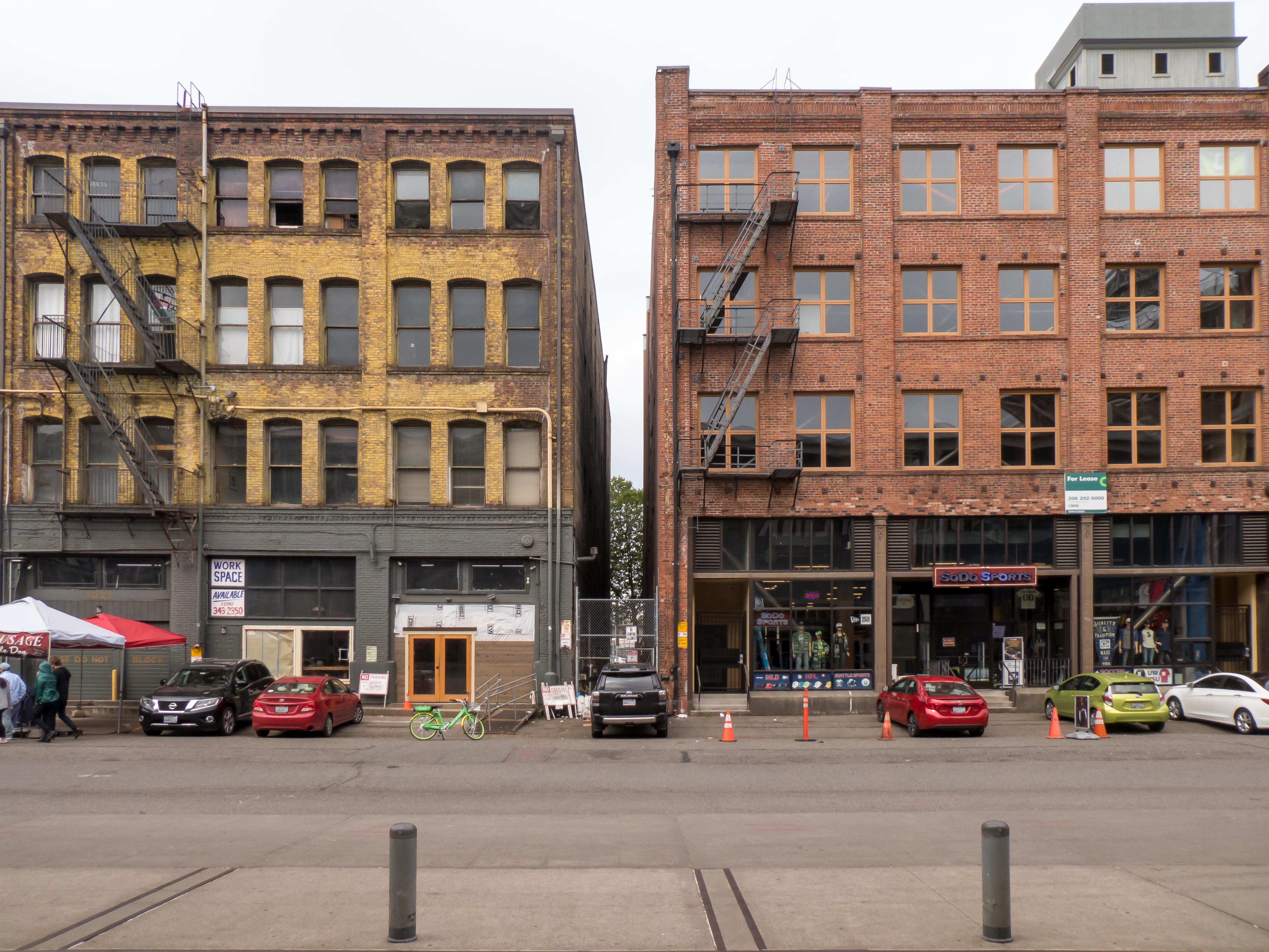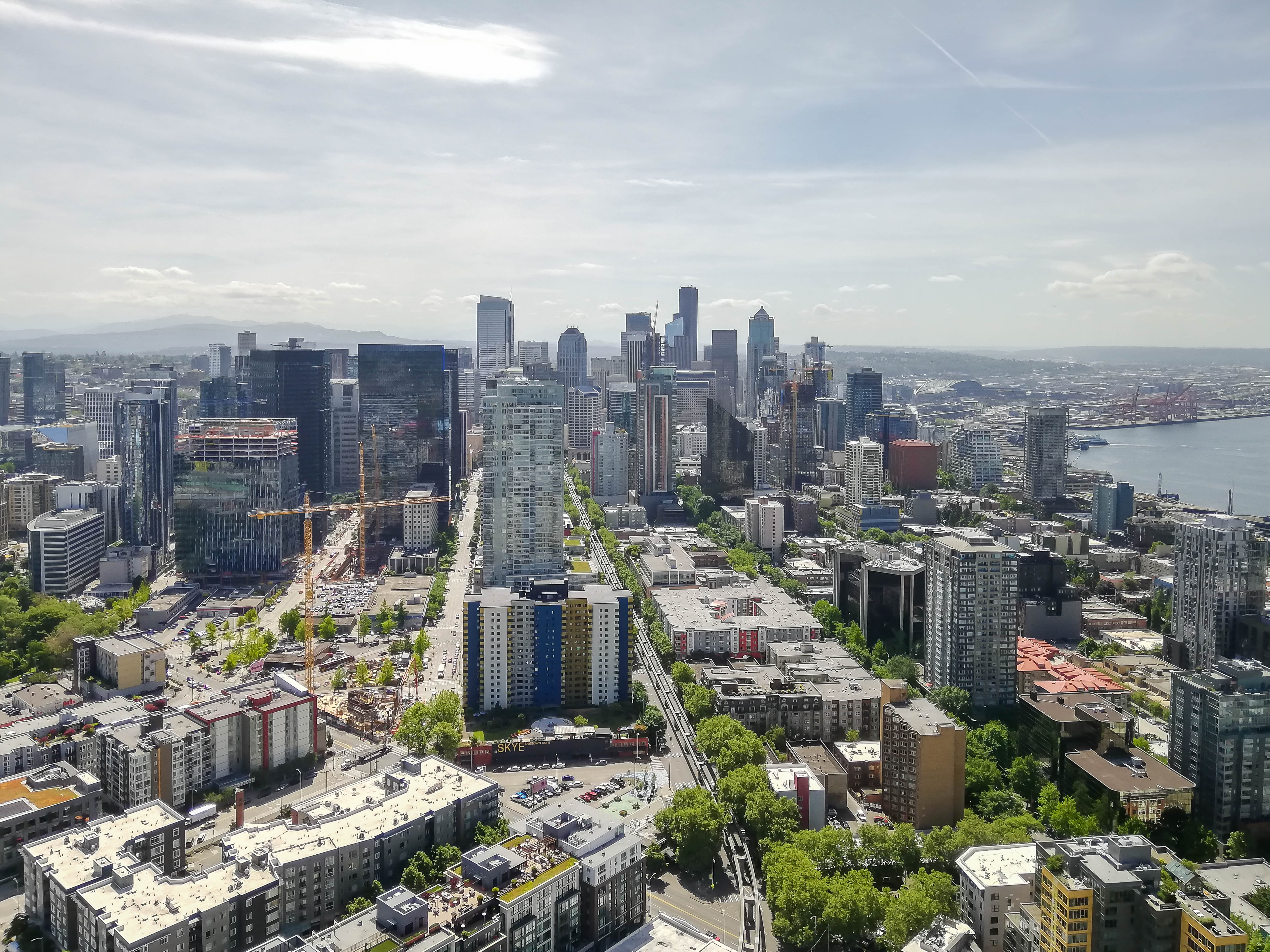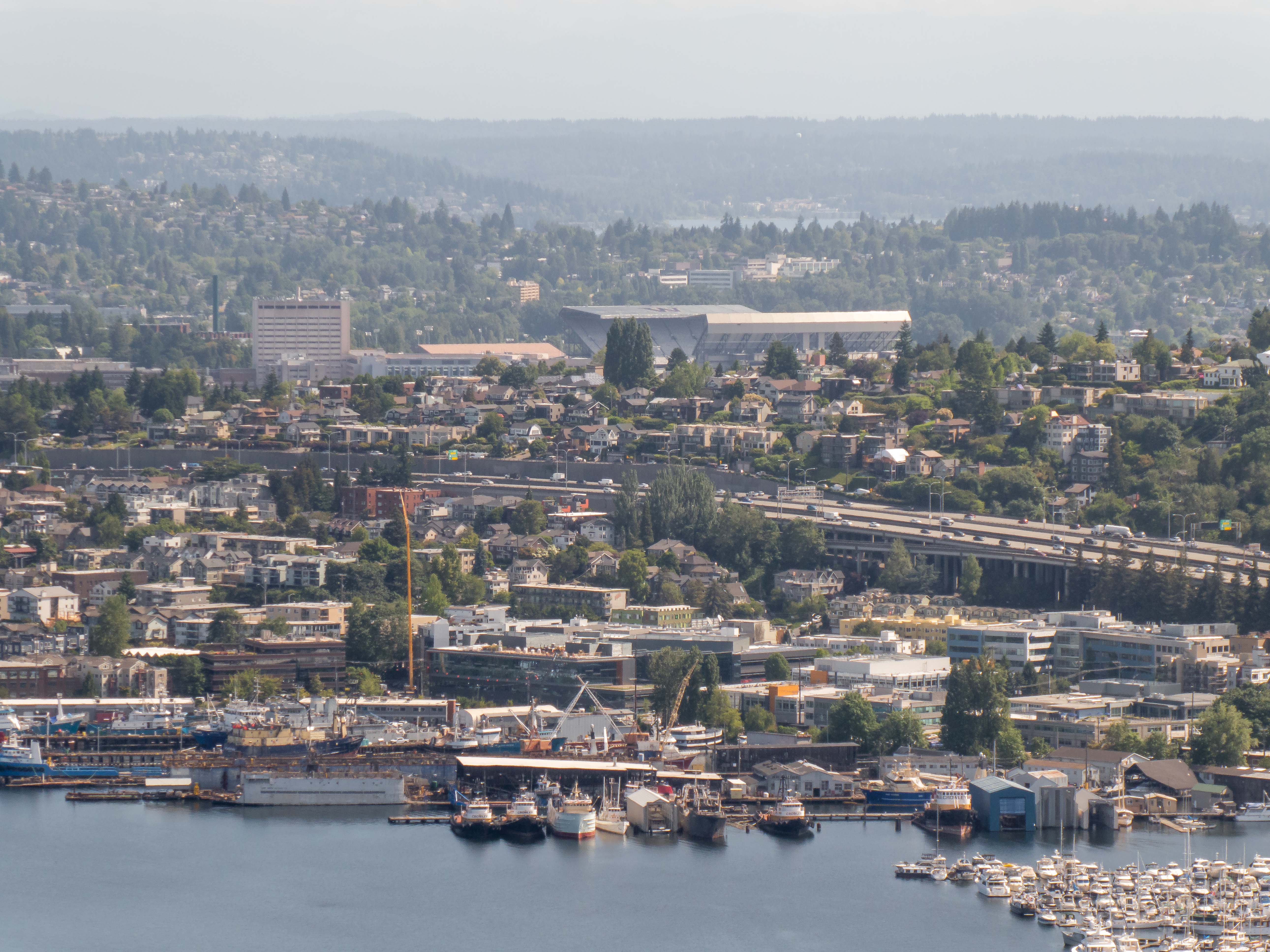 Beneden, bijna onder je voeten, ligt Memorial Stadium. Een stadion dat zich schaamt voor zijn eigen bestaan en zich daarom maar half in het groen verstopt. En verderop, de ruige haven met haar oude pakhuizen, staan de twee grote jongens. CenturyLink Field met zijn groen-blauwe dak en bogen die lijken te zeggen: kom maar, we kunnen je hebben. En daarnaast T-Mobile Park, industrieel, hoekig, een stadion dat eruitziet alsof het elk moment een vrachtwagen kan inladen. Voor een Stadionautist is dit geen skyline. Dit is een menukaart.
