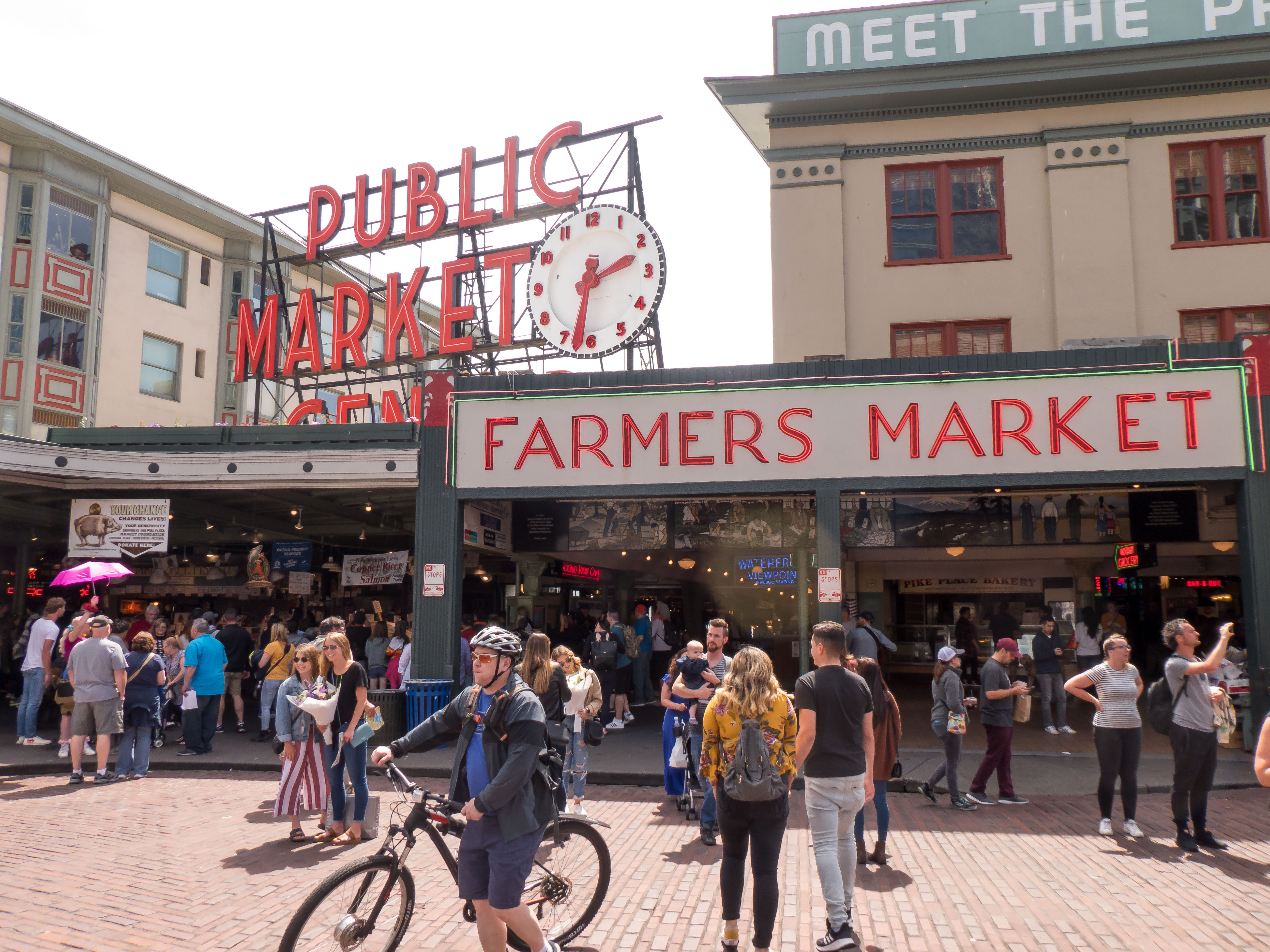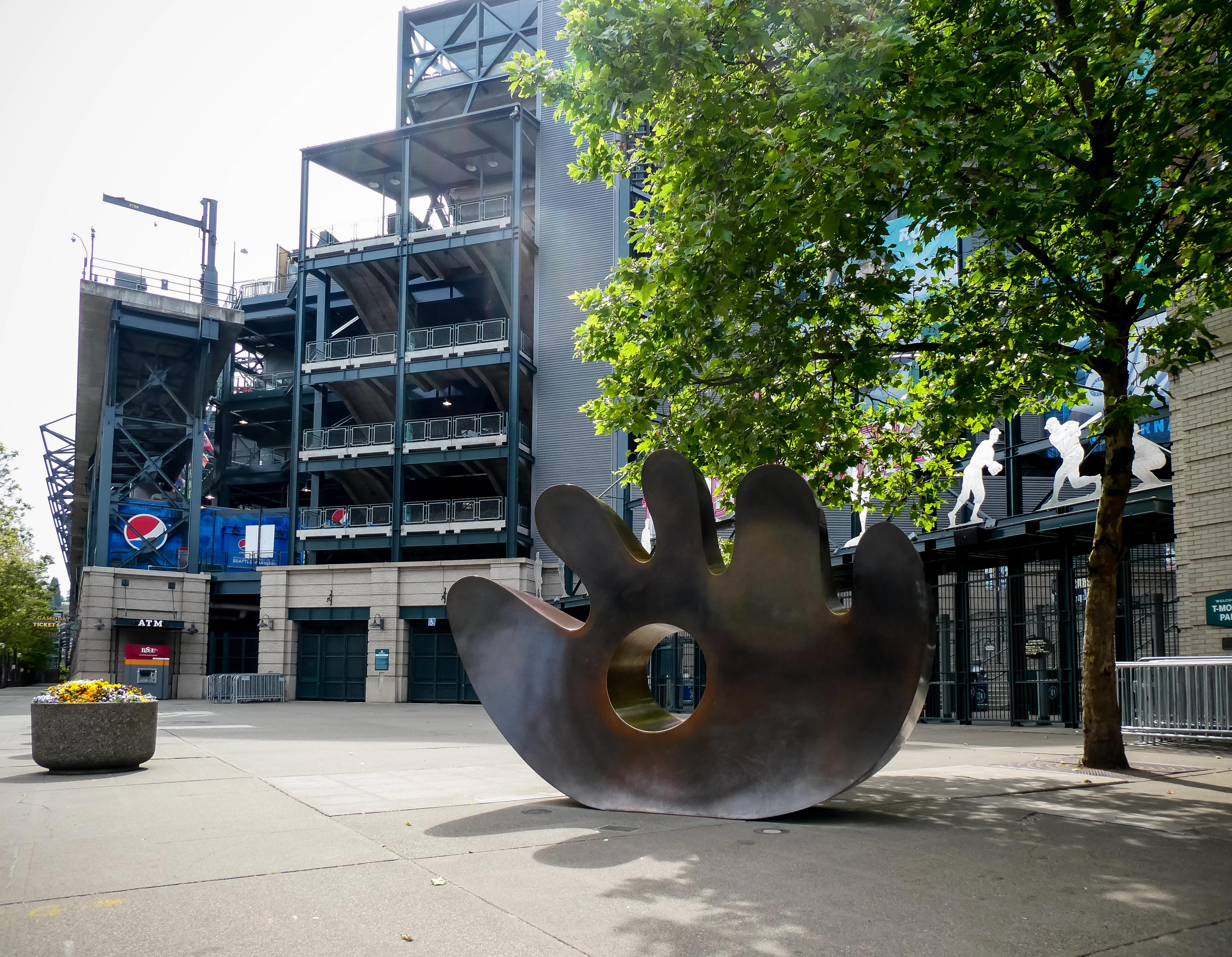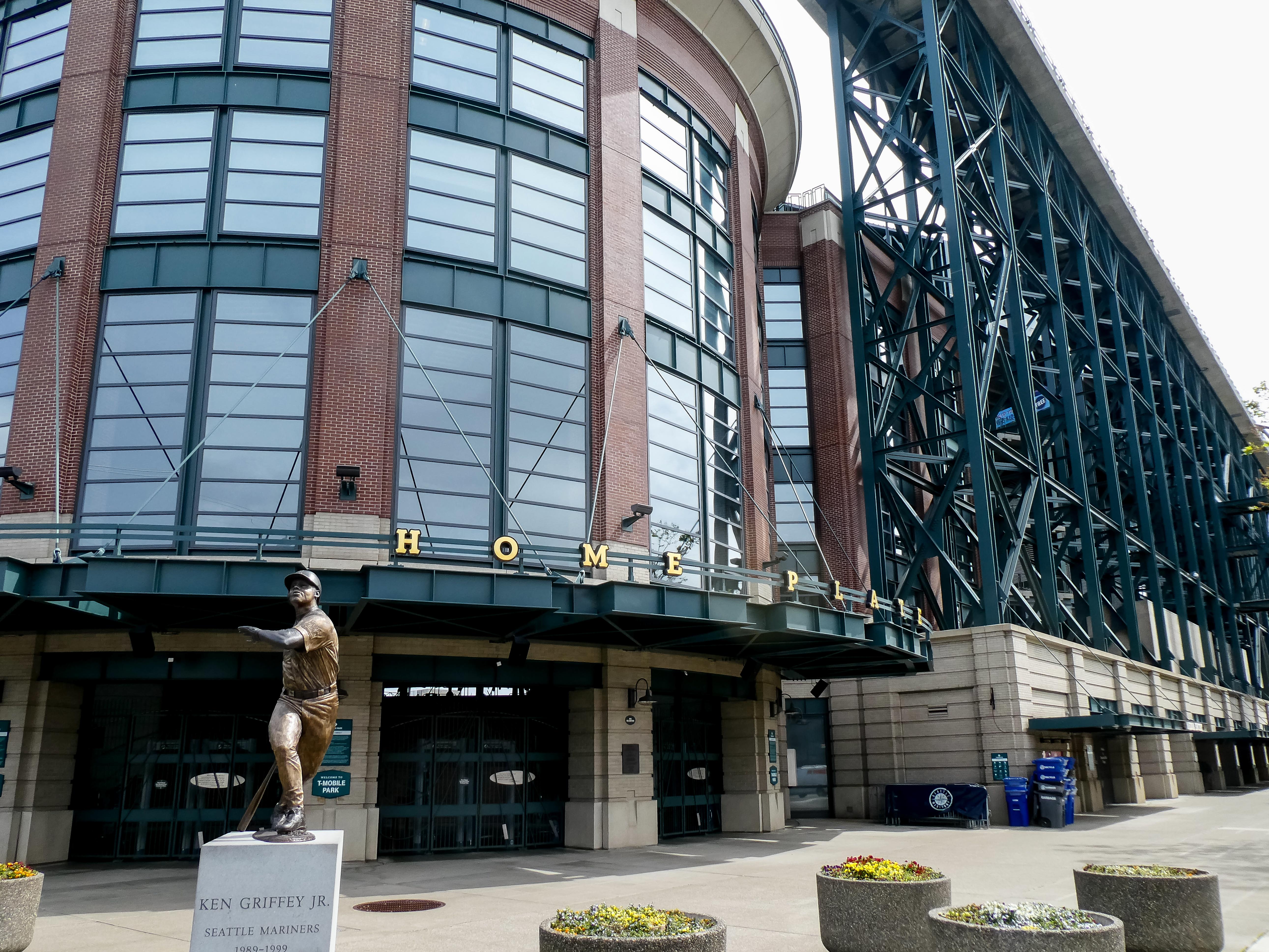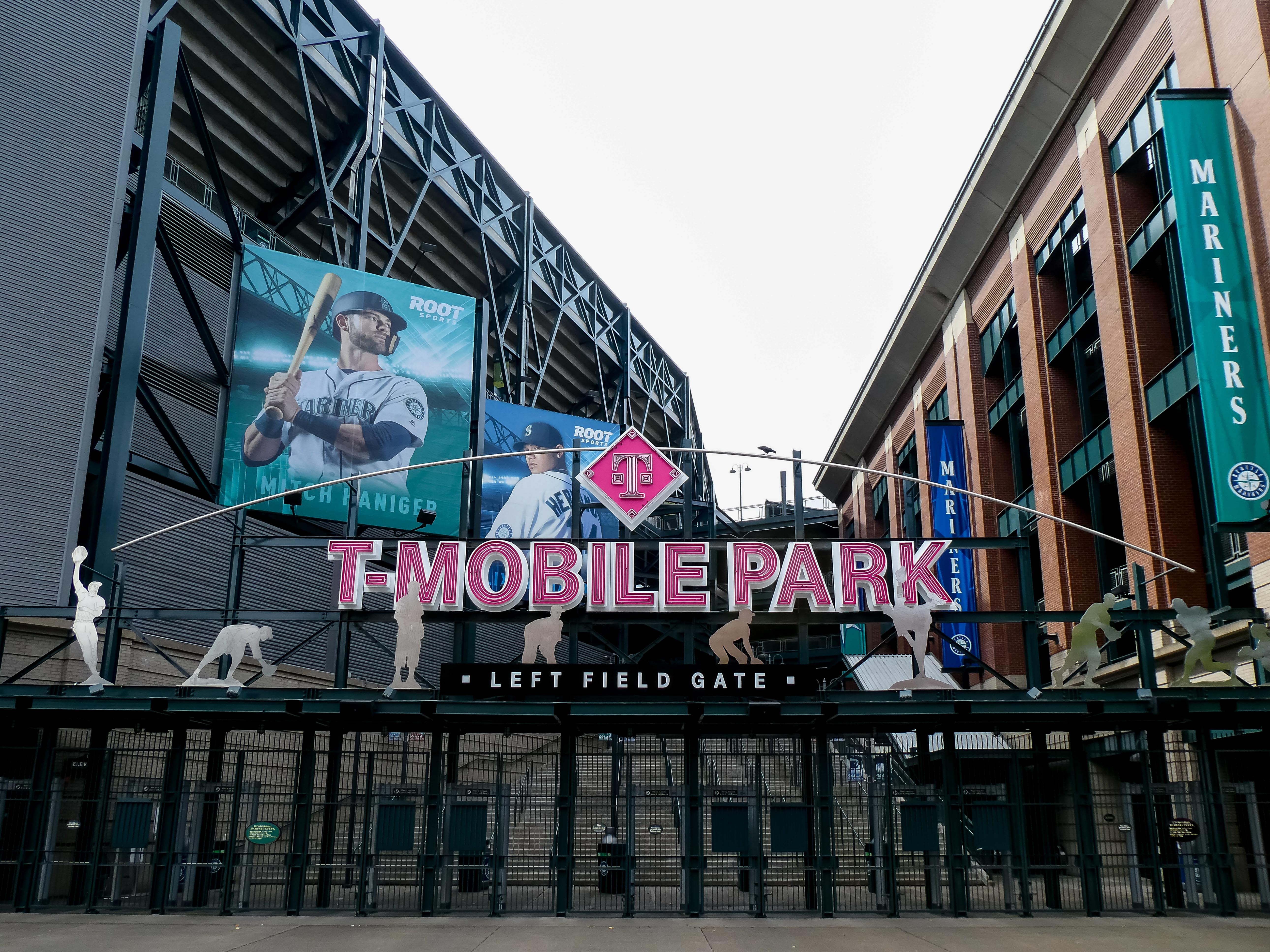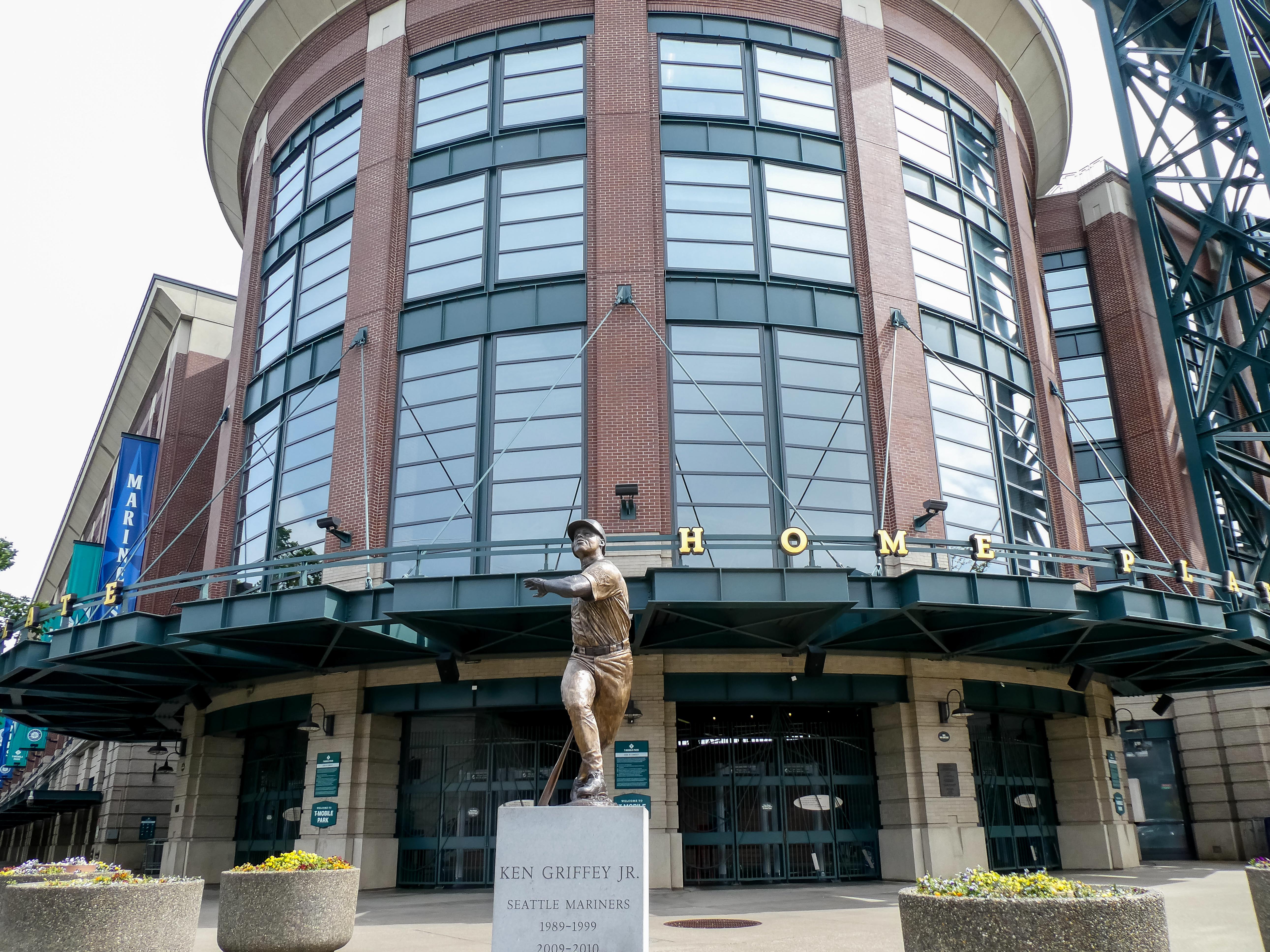 Op naar T-Mobile Park, het honkbalheiligdom van de Mariners, slechts een loopafstand verderop tussen de vervallen pakhuizen die de buurt een gritty vibe geven. De Left Field Gate lokte me met neonroze letters en silhouetten van swingende spelers, pure uitnodiging voor een Stadionautist. Voor de poort stond een bronzen Ken Griffey Jr., de legende, die je welkom heet alsof je een oude vriend bent.