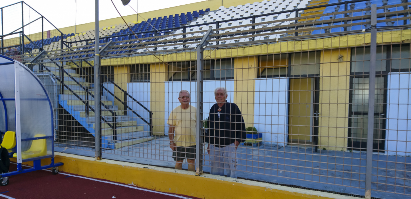 Panagiotis is ruim op tijd voor de training zodat er voldoende tijd is om een rondleiding te geven in het stadion. Of stadion… Meer dan een tribunedeel is het niet meer. Het stadion heeft nu een capaciteit van 3.000 toeschouwers. Al jaren zijn er plannen om de tribune door te trekken maar er is iets met een crisis. Bovendien speelt een belastingvoordeel mee. Zolang een gebouw niet af is, hoeft er geen belasting betaald te worden. Een vreemde regel. Inmiddels zijn we ook meer over Zakynthos FC te weten gekomen. De club heet officieel APS Zakynthos, het is een semi-profclub en speelt in het Municipal Stadium. De club komt uit op het derde niveau - Gamma Ethniki genaamd - en speelt in groep 5. Twee seizoenen geleden degradeerde het uit de Football League wat opvallend was omdat het seizoen ervoor werd afgesloten op een vijfde plek en plaatste APS Zakynthos zich voor de Play-offs. En nee, voetbalavonturiers komen hier eigenlijk nooit.