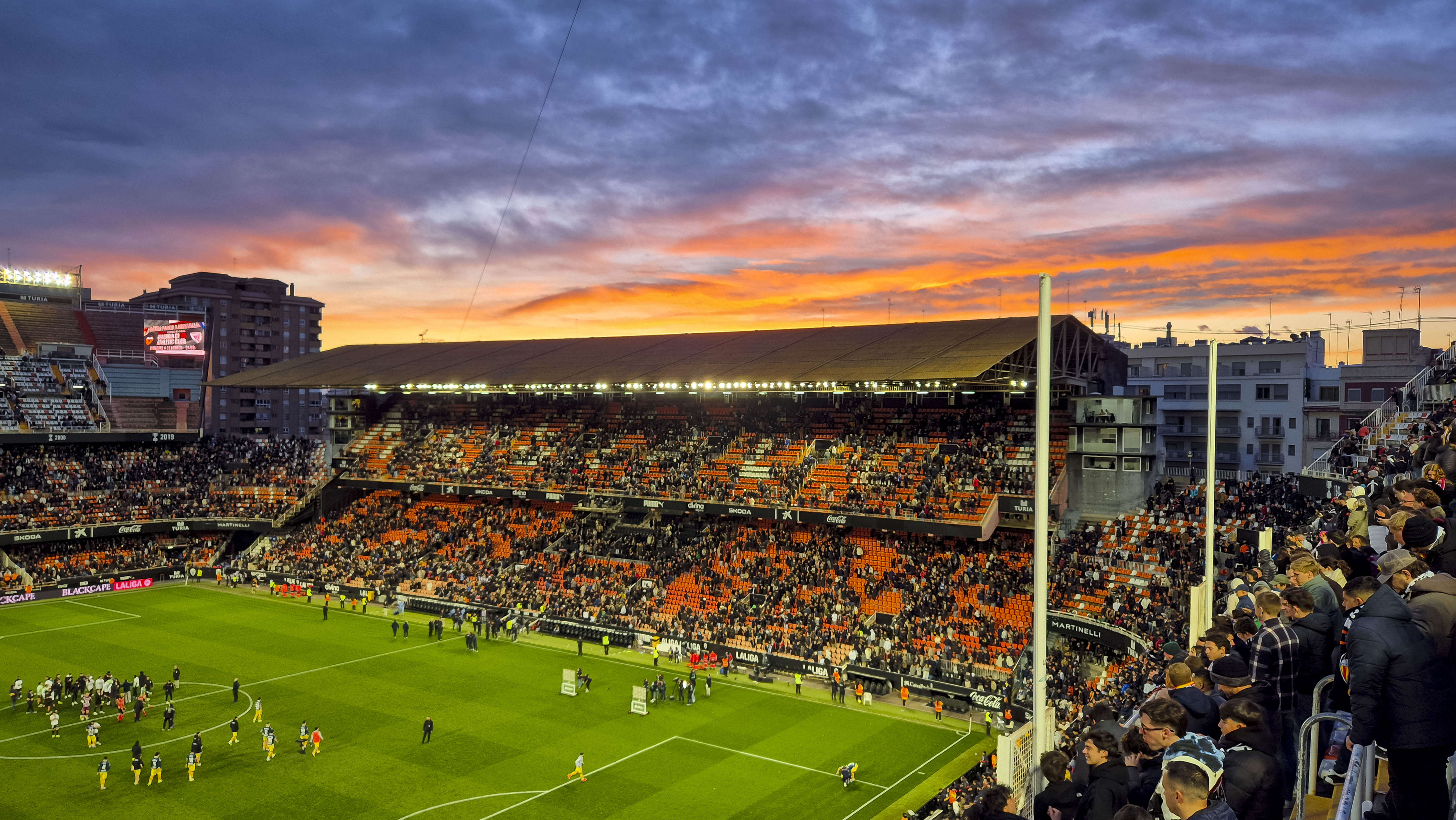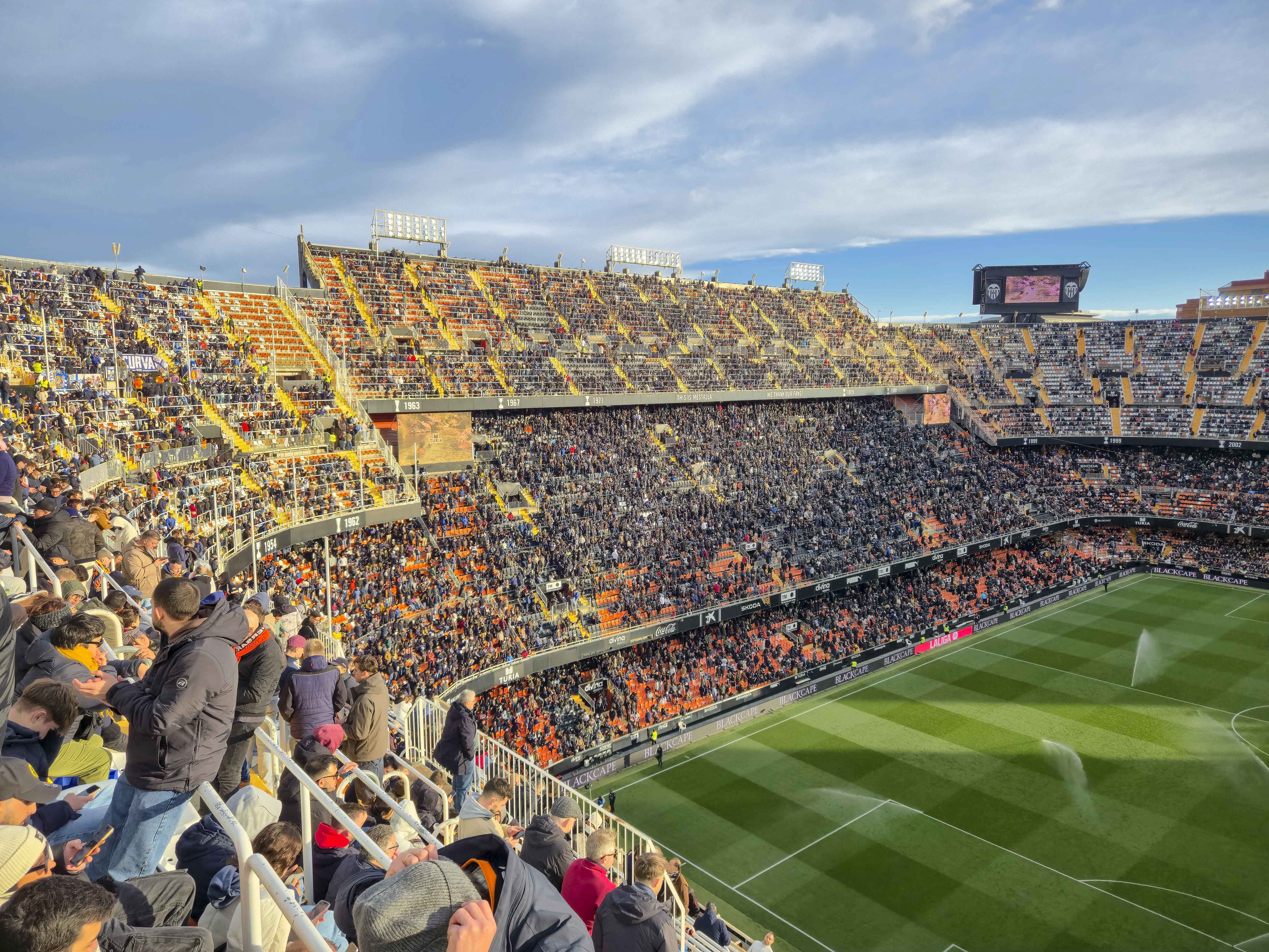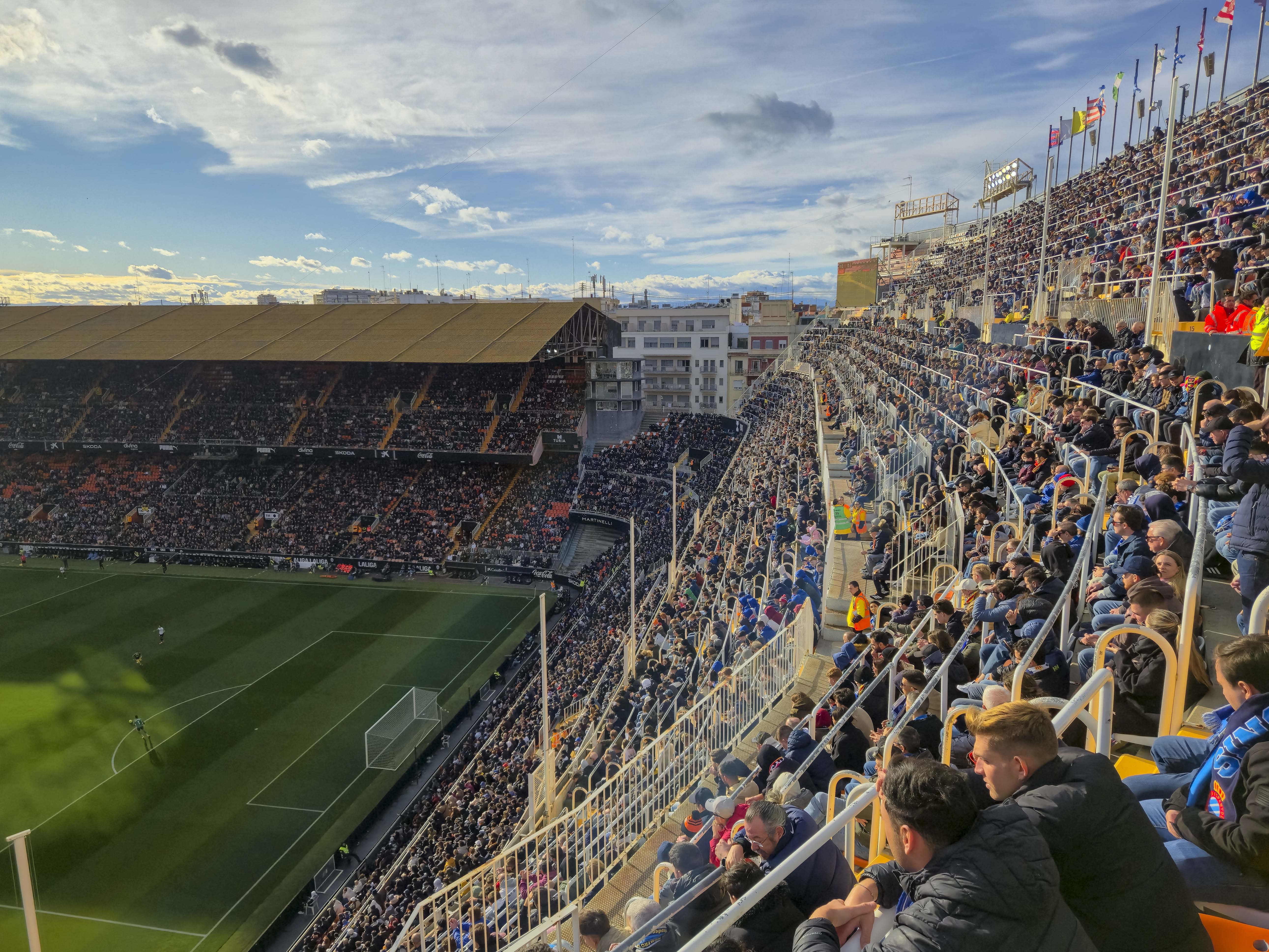 En daar stond ik, in de hoek van Mestalla, tussen de uitsupporters, tussen de energie, tussen de chaos. Mestalla is een stadion dat niet gelooft in strakke scheidingen. Als je wilt staan, dan sta je. Als je wilt voelen, dan voel je. De eerste helft bewoog ik mee met de massa, de laatste tien minuten pakte ik een andere hoek mee, simpelweg omdat dit stadion het verdient om van meerdere kanten geproefd te worden.