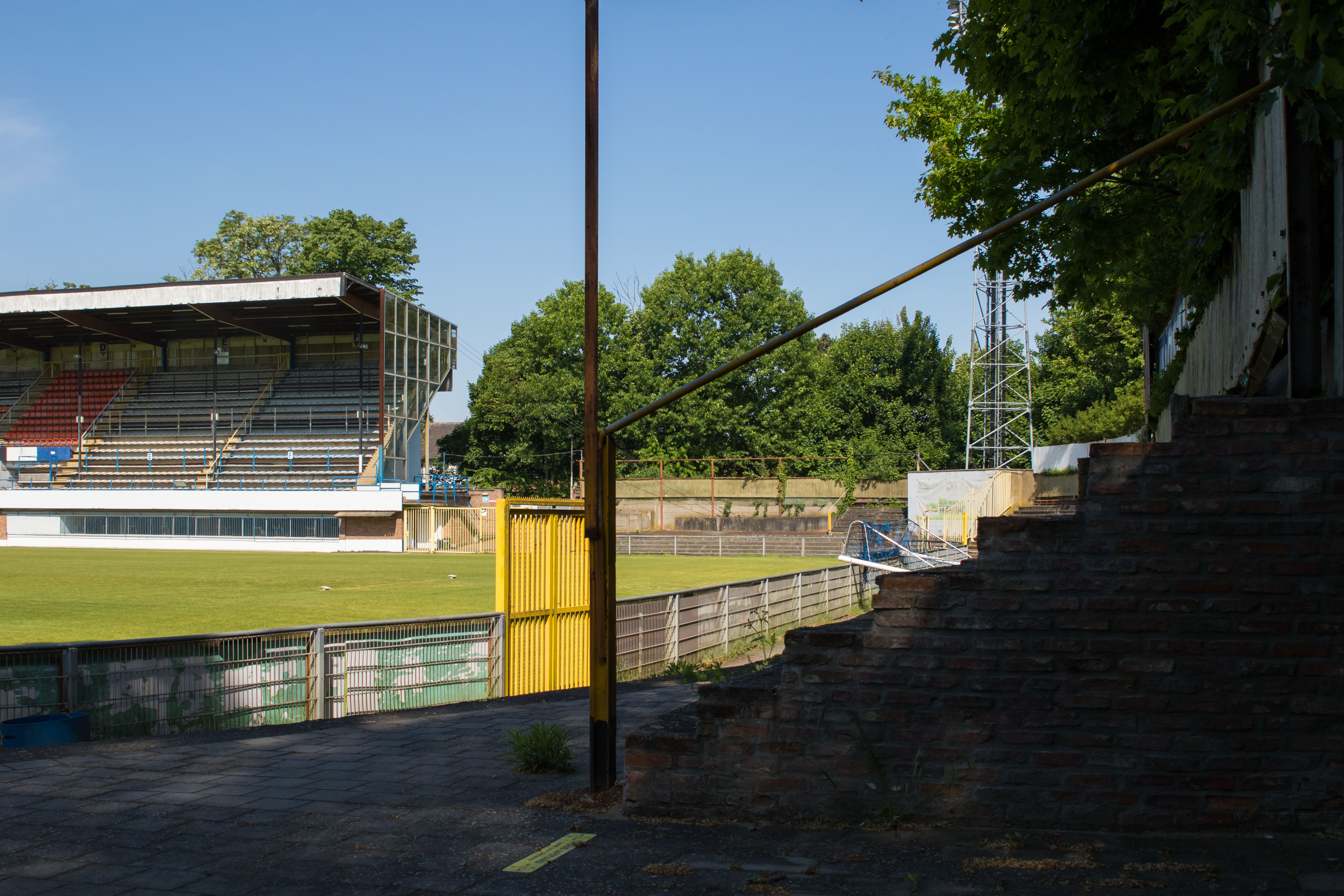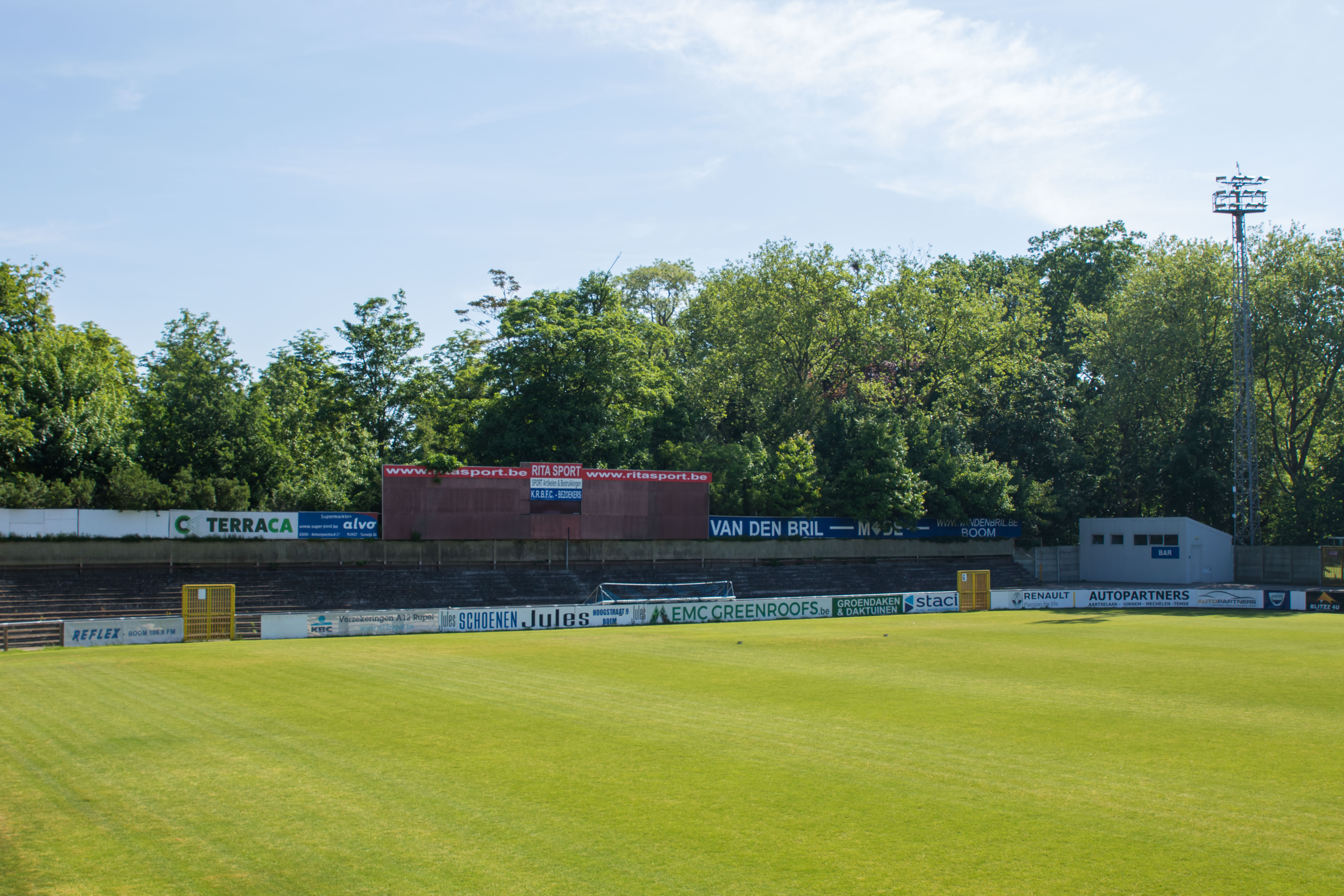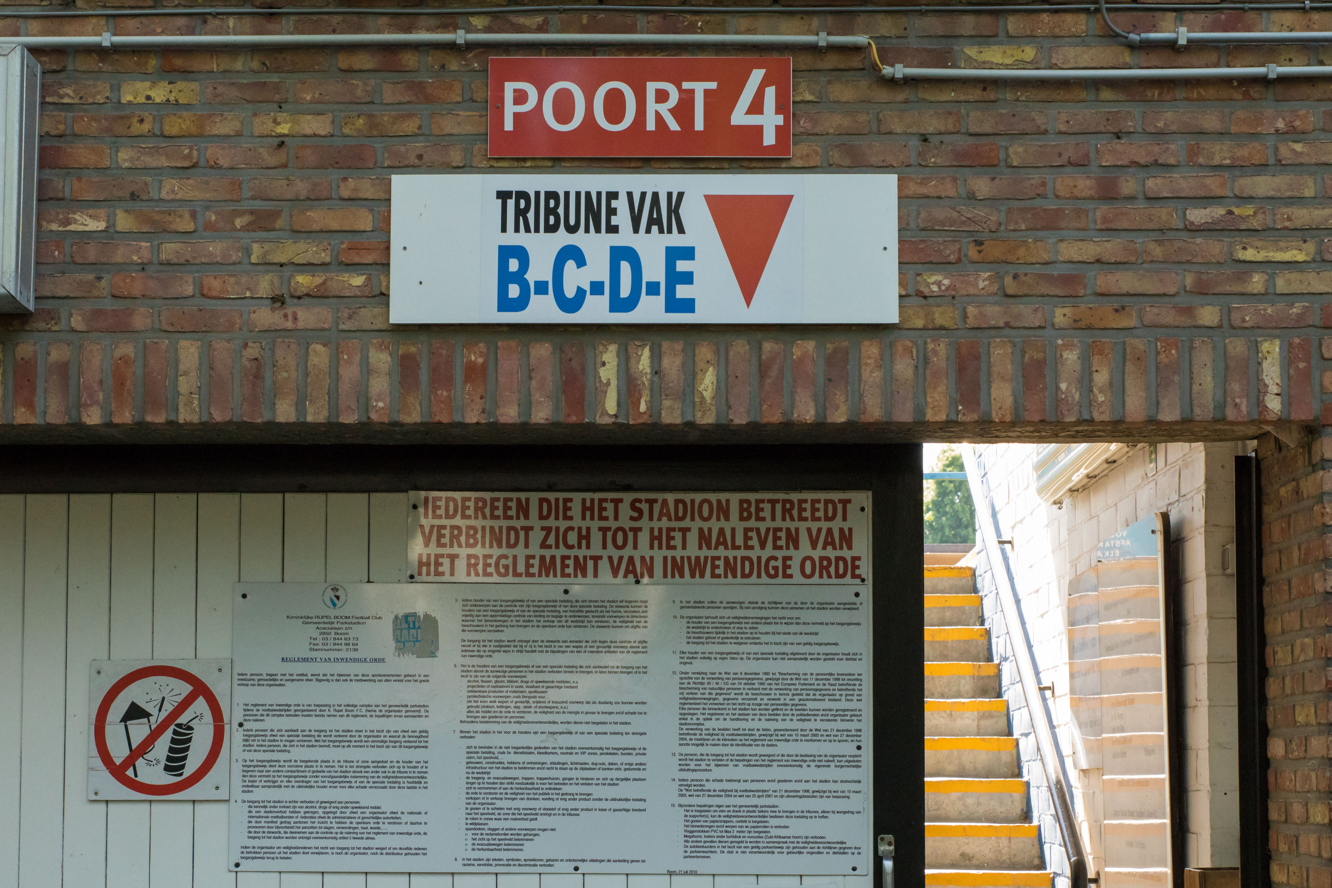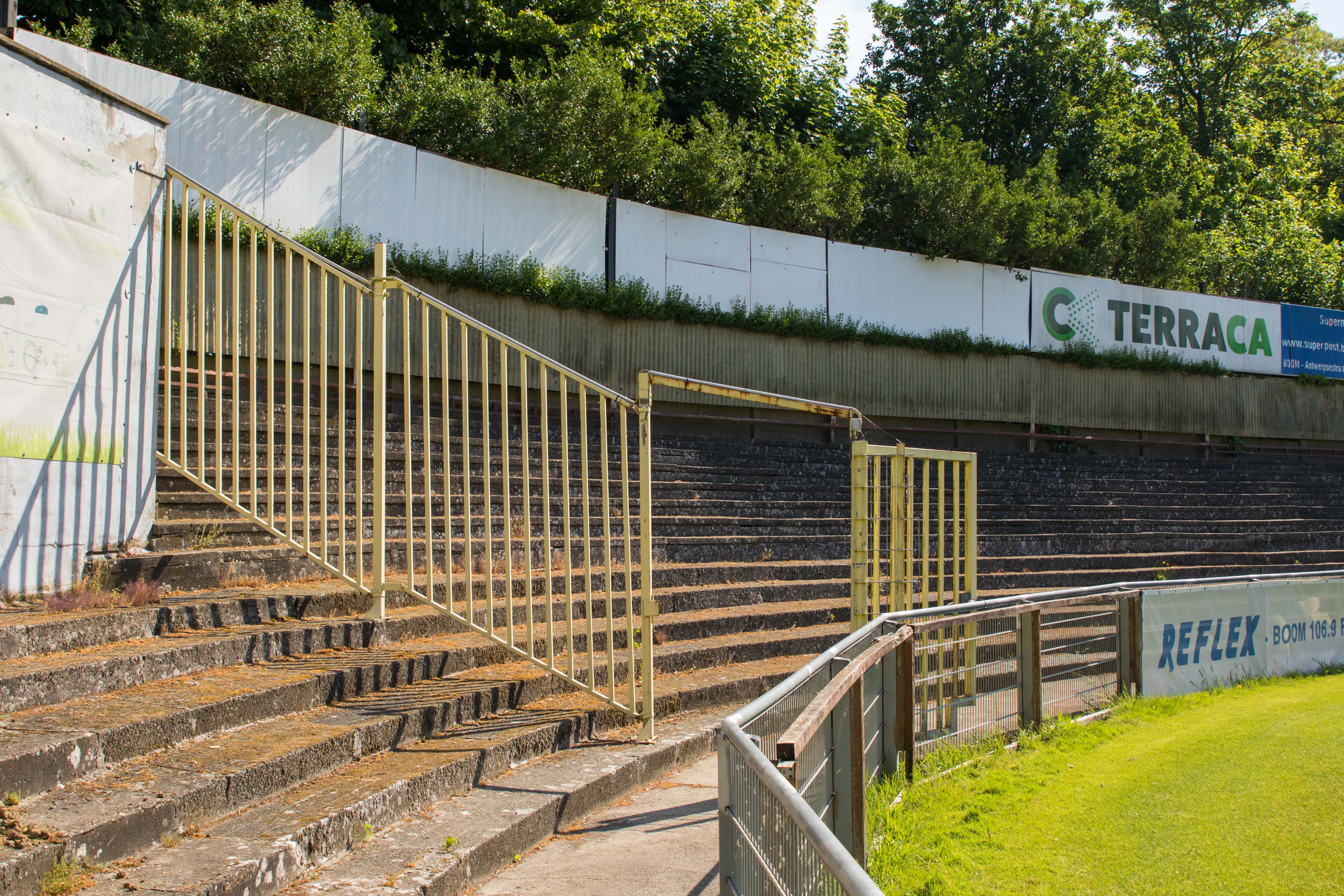 In Boom staat het hek open. Dat is bij oude stadions zelden toeval. Het is geen uitnodiging, eerder een terloopse mededeling. Kom maar even kijken, als je toch langsrijdt.