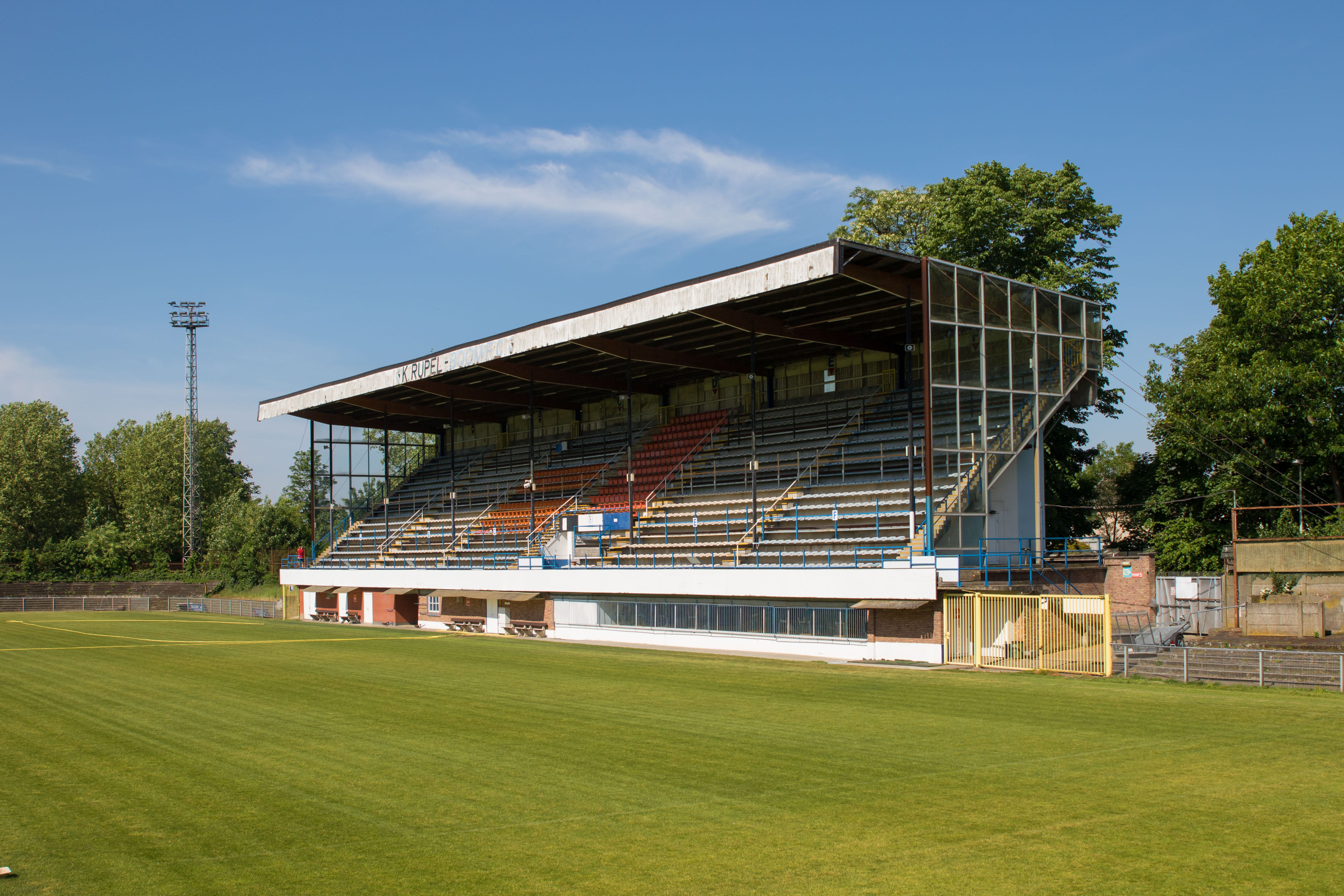 De hoofdtribune torent boven het veld uit zoals hoofdtribunes dat doen in dorpen en kleine steden. Steil, serieus, licht overdreven. Gebouwd door mensen die ooit hebben gezegd: als we het doen, doen we het goed. Niet kleiner, niet zuiniger, maar zoals het hoort. Dat soort beslissingen draagt je decennia mee, zonder dat ze hun vorm verliezen.
