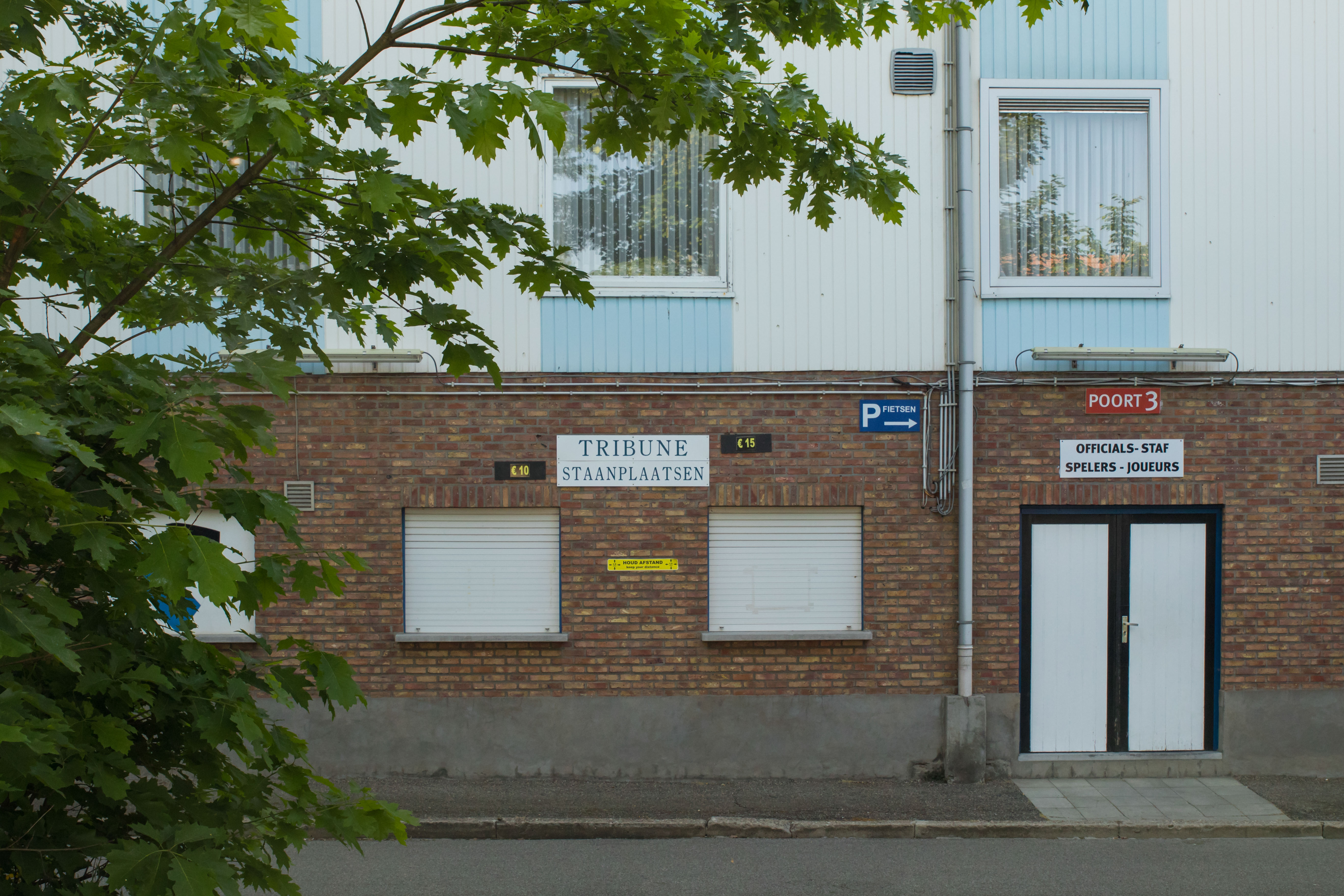 In de hoek van het stadion staat het loket. Drie raampjes. Verweerde letters, ja, maar niets definitiefs. Hier worden kaartjes verkocht, alleen vandaag even niet. Vandaag houdt het loket pauze. Straks, of volgende week, schuift er weer iemand aan om wisselgeld te tellen en “veel plezier” te zeggen zonder te weten hoe die middag zal eindigen. Dat soort rustige zekerheid hoort bij stadions die nog steeds meedoen.