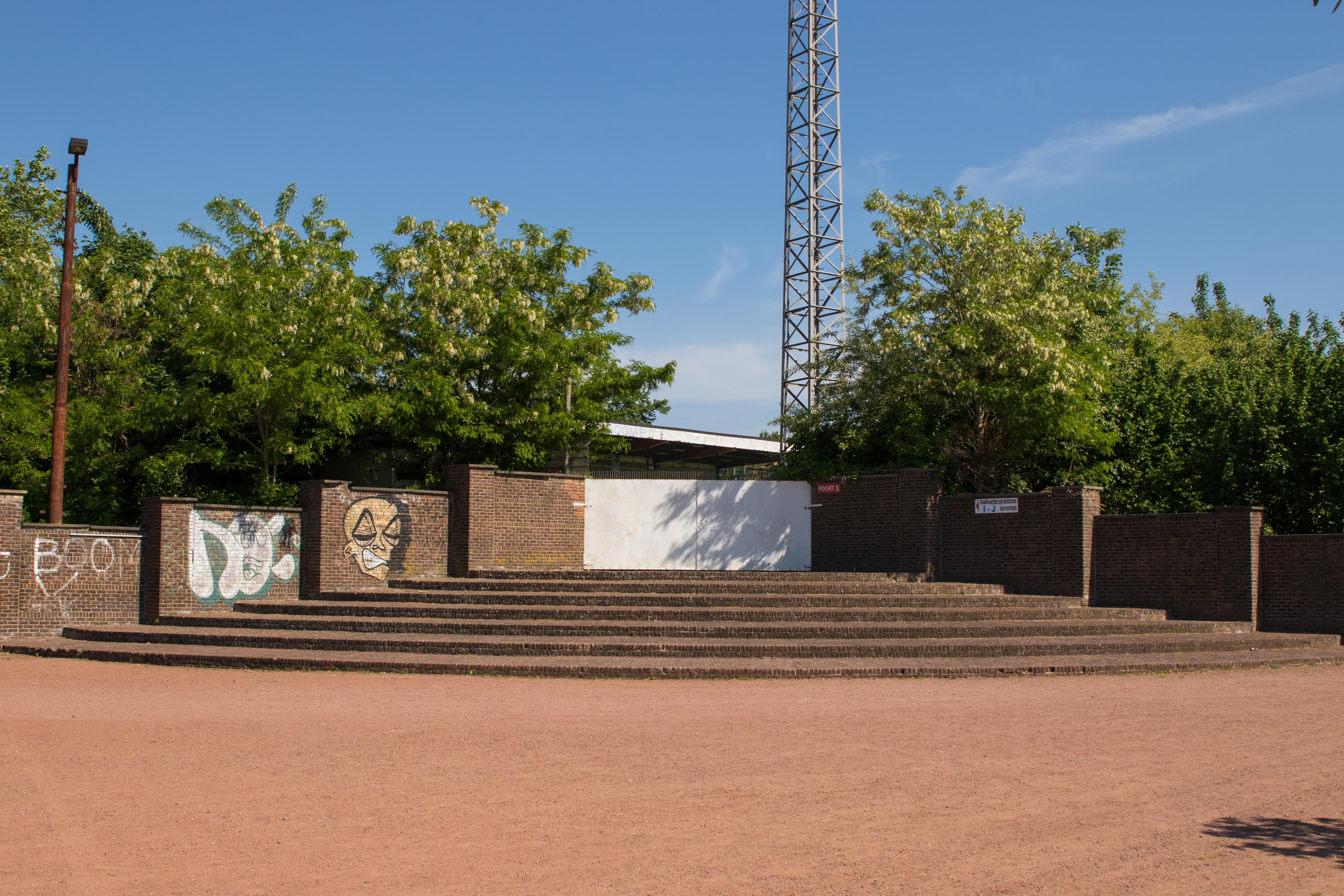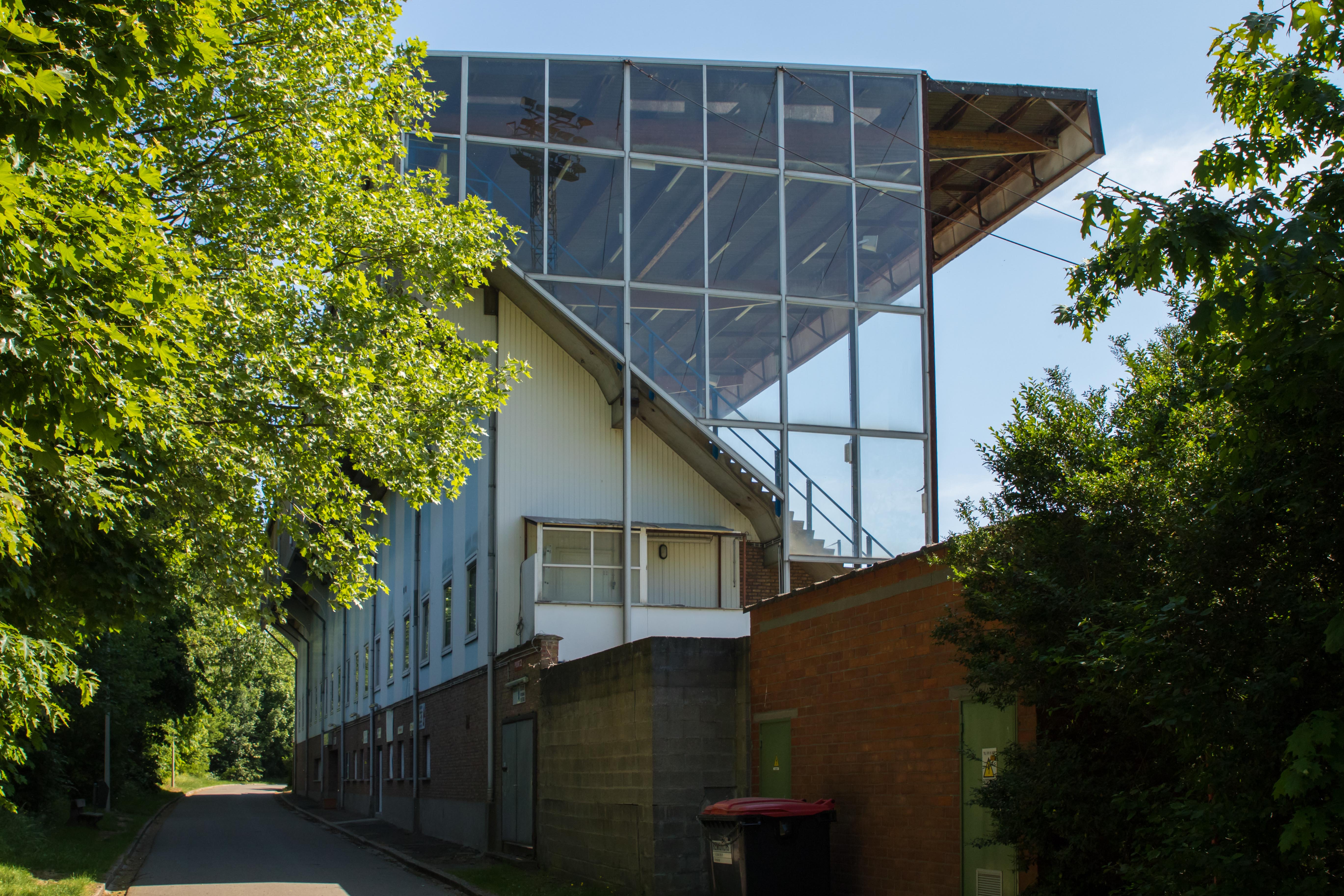 Het Gemeentelijk Parkstadion ligt in het volle zonlicht alsof het zich heeft aangekleed voor een dag zonder publiek. Geen vlaggen, geen geluid, geen geur van friet of koffie. Alleen beton, gras en stilte. En toch voelt het meteen vertrouwd. Niet verlaten, niet vergeten, maar gewoon even alleen. Alsof het stadion weet dat ik hier nu sta, ook al wist ik dat zelf nog niet toen ik uitstapte.