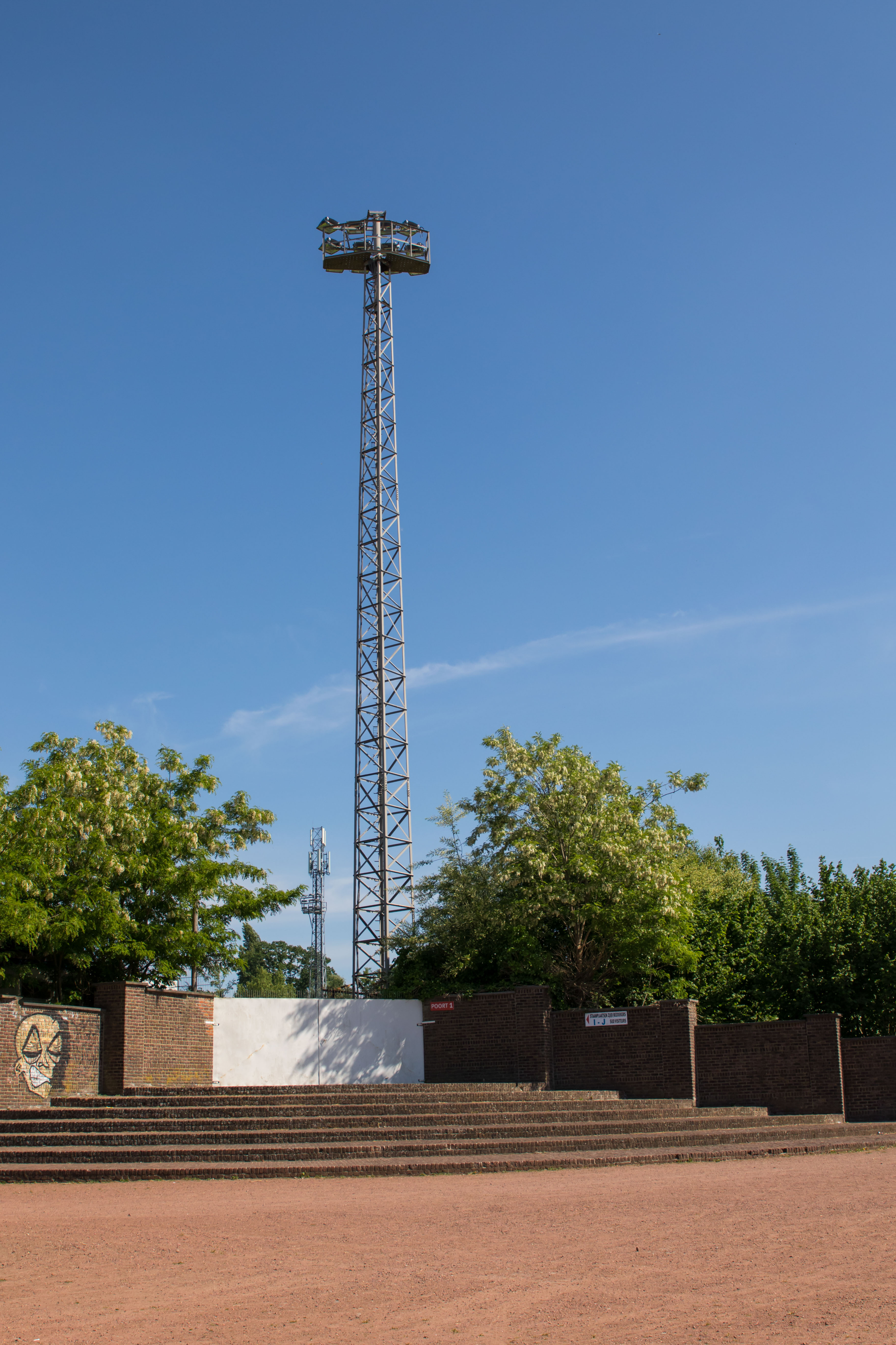 Boven het veld staan de vier lichtmasten. Hoog, hoekig, functioneel en onmiskenbaar van een andere tijd. Wachters zonder dienst, maar nog altijd paraat. Ze doen niets en doen dat met overtuiging. Hun lampen blijven uit, maar hun aanwezigheid is onmiskenbaar. Ze weten dat hun moment terugkomt. Dat doet het altijd.