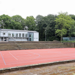 HoeschparkIn mijn zoektocht naar verlaten stadions in het Ruhrgebied werd ik gewezen op Hoeschpark, of eigelijk Sportpark Weiße Wiese, waar ooit het eerste stadion van Borussia Dortmund zou hebben gestaan en waar nog wat ‘resten’ te zien zouden zijn. Met deze beperkte informatie zette ik de auto voor de hoofdingang van Hoeschpark….