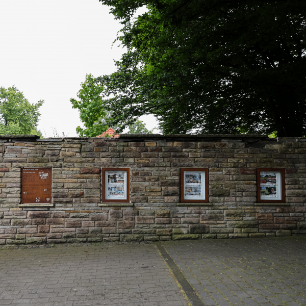 Het Hoeschpark is een groene ruimte in het noorden van Dortmund met tal van sportfaciliteiten tussen de Borsigplatz en de voormalige Westfalenhütte van Hoesch Stahl AG. Tegenwoordig wordt het onderhoud van het park gedaan door Sportwelt Dortmund GmbH (Sports World Dortmund Ltd) en een van de tuinmannen die vandaag aan het werk is in het park kan mij vertellen daar het oude stadion van Borussia heeft gestaan. “Afgelopen week was de historicus van de club op deze plek en hij bevestigde dat dit het enige tastbare bewijs is, dat dit nog een klein deel van de oude tribune is.”