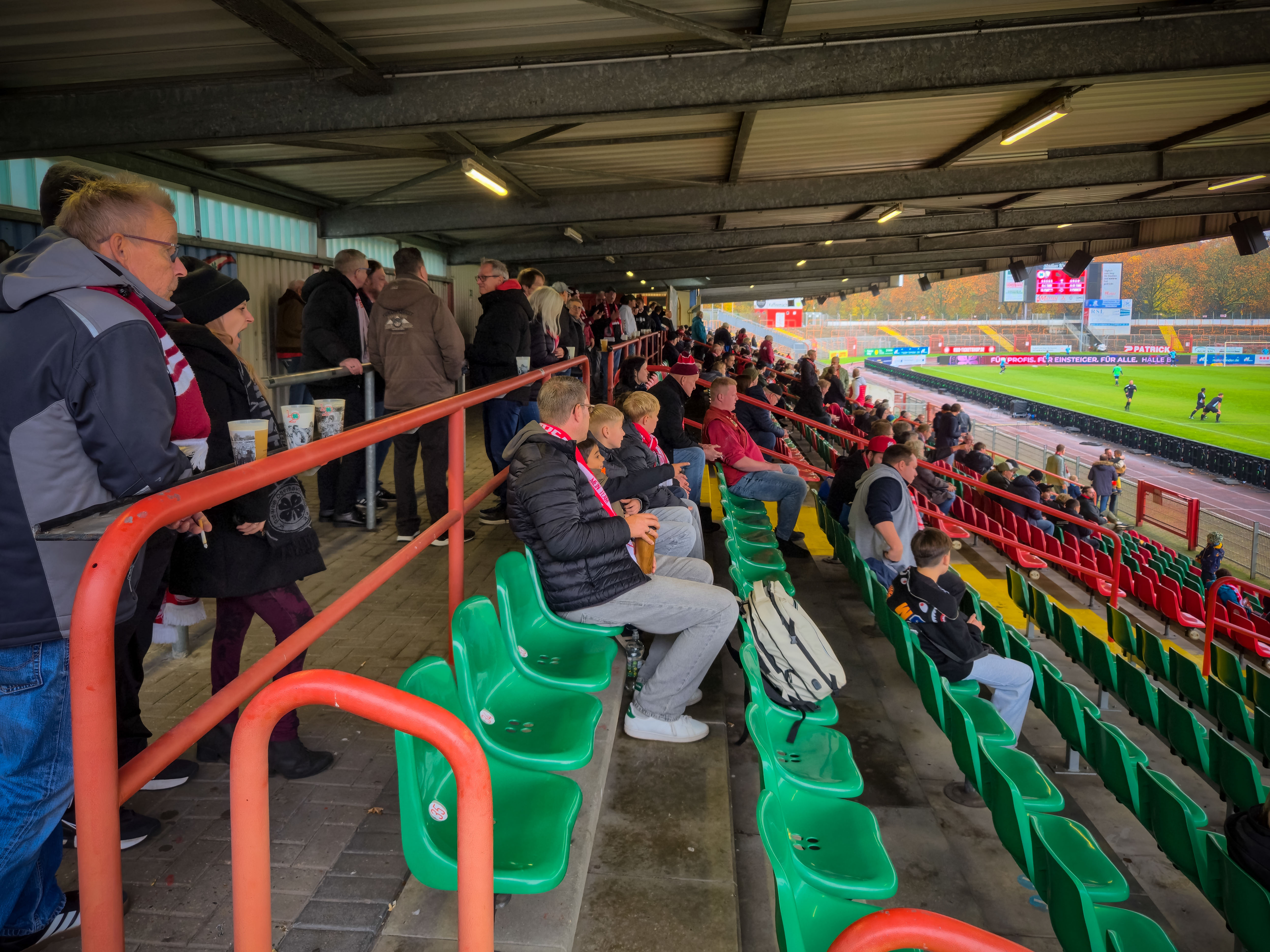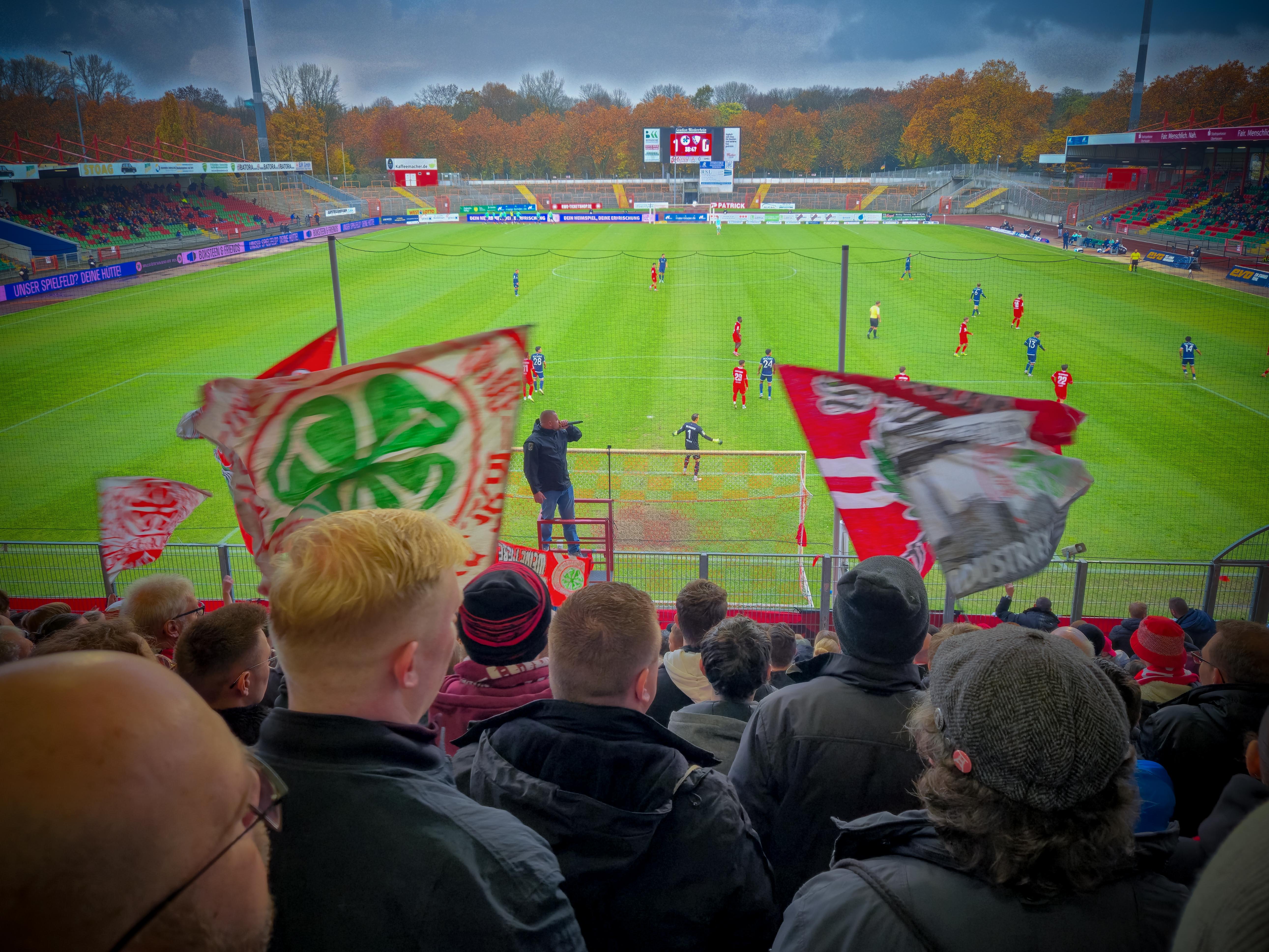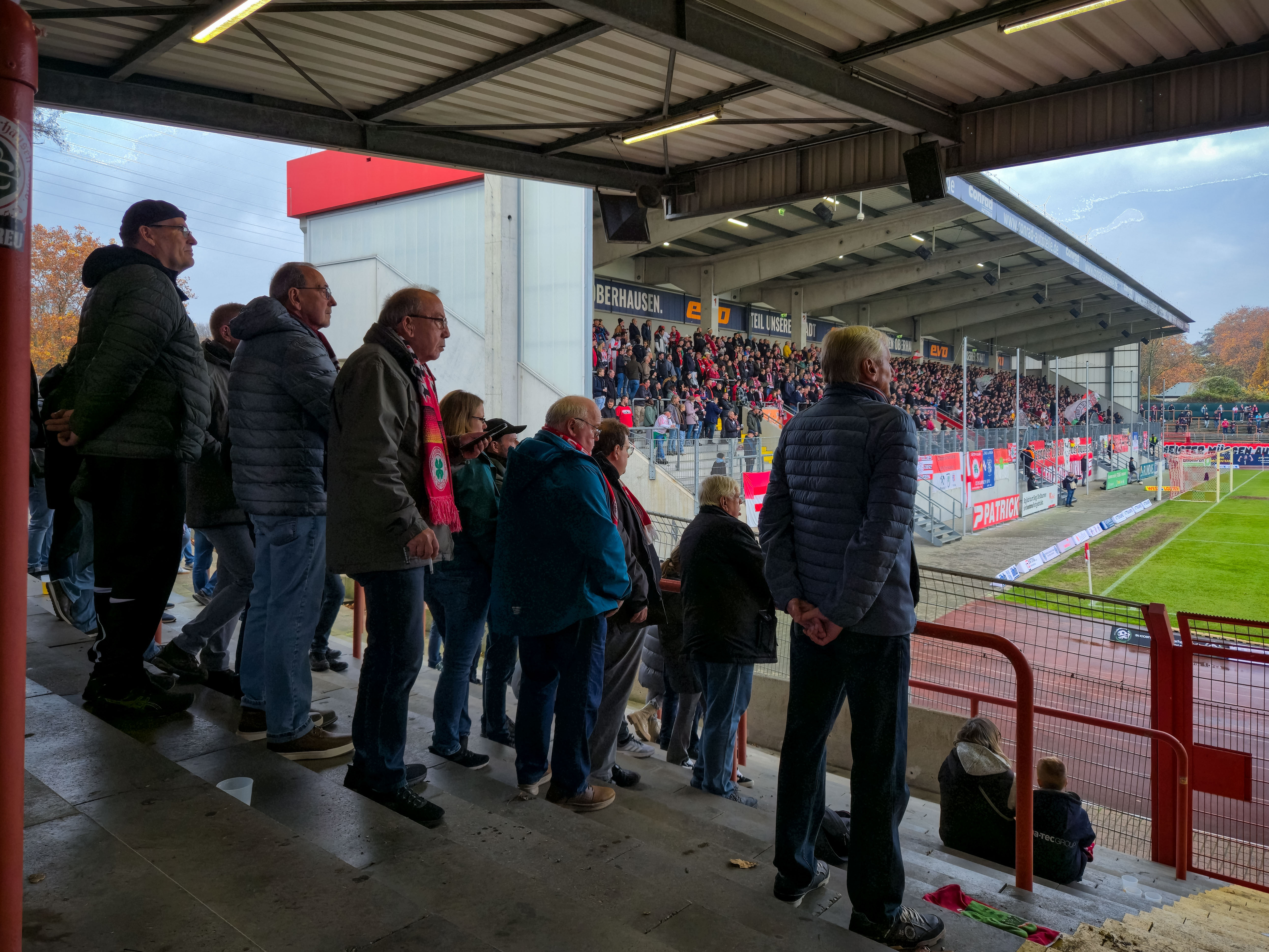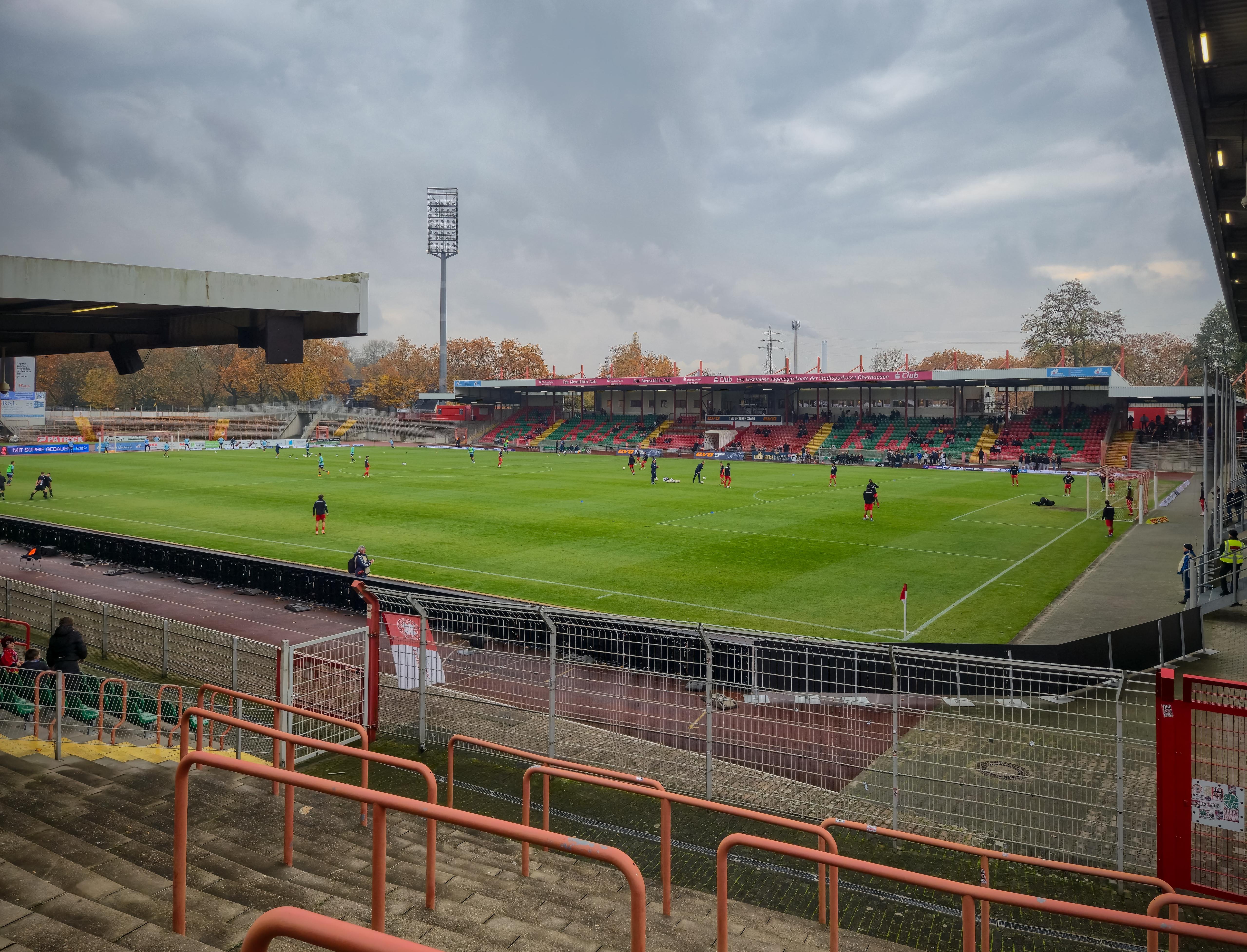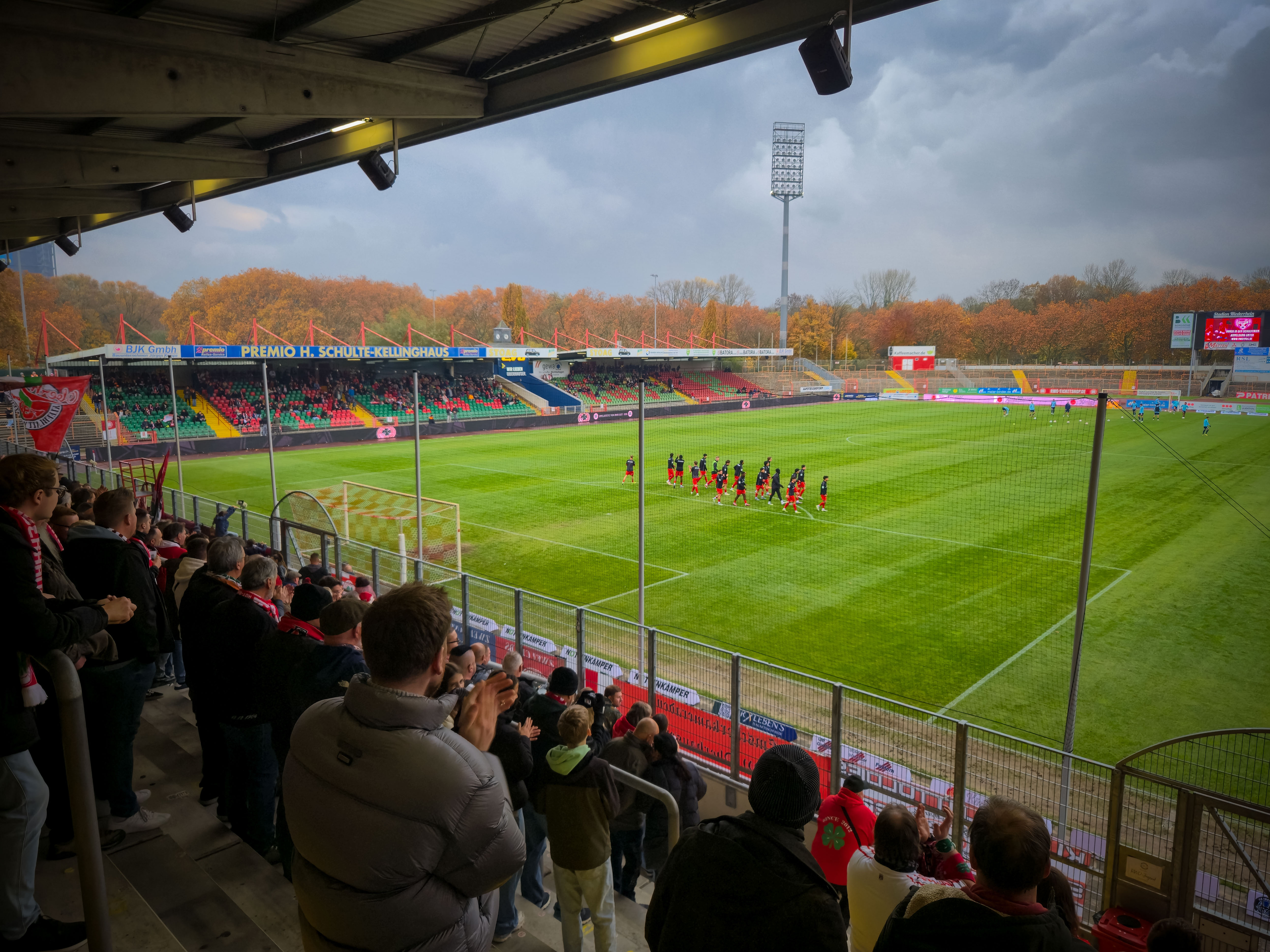 Want dat is Niederrhein. Een stadion dat niet perfect wil zijn. Een club die niet doet alsof ze Champions League spelen. Hier is voetbal nog rauw, ongepolijst, menselijk. Je krijgt piepende oren van de speakers, je ziet nauwelijks de wedstrijd door de vlaggen, en je maag blijft leeg omdat de catering de speelregels niet kent. Maar je ziel vult zich.