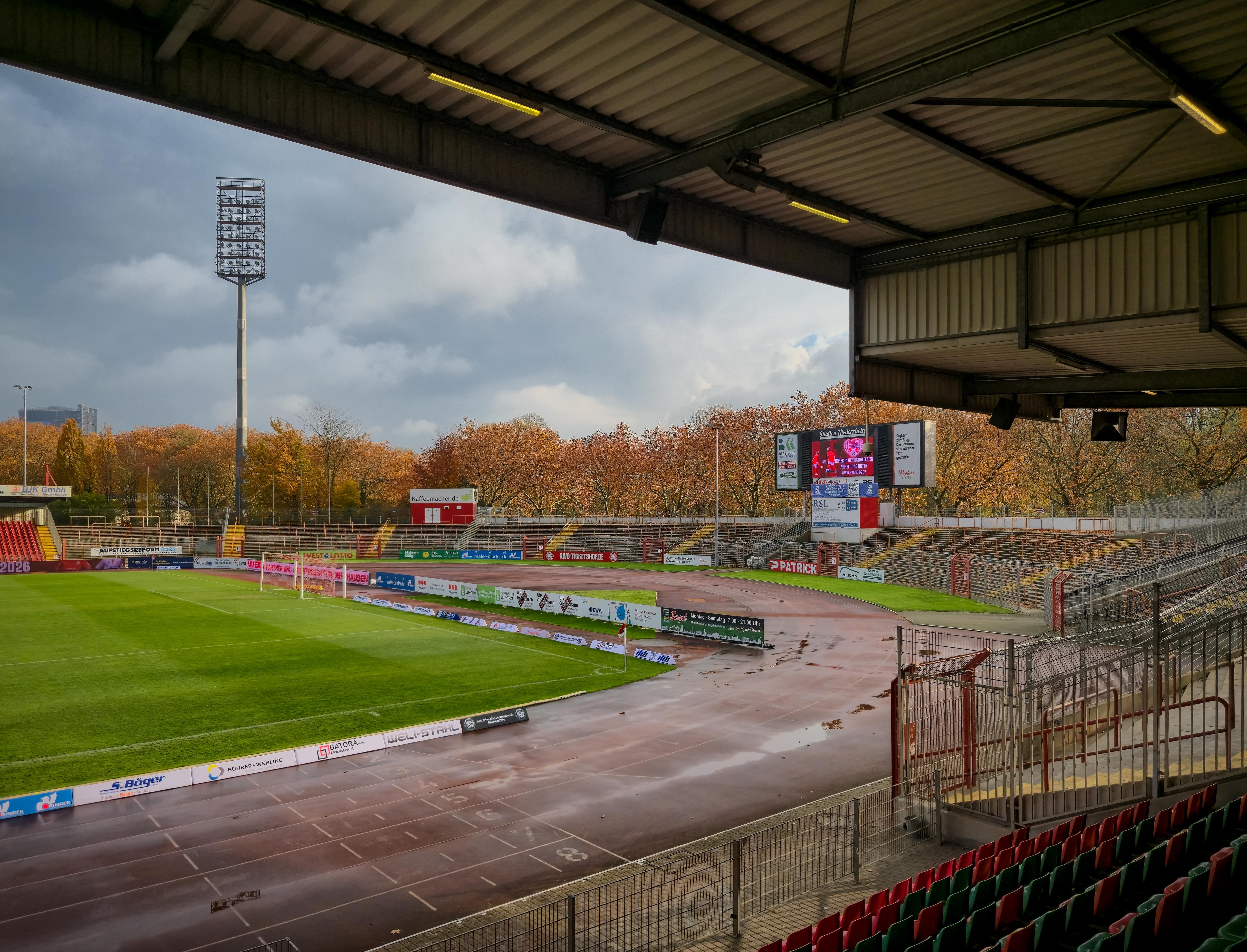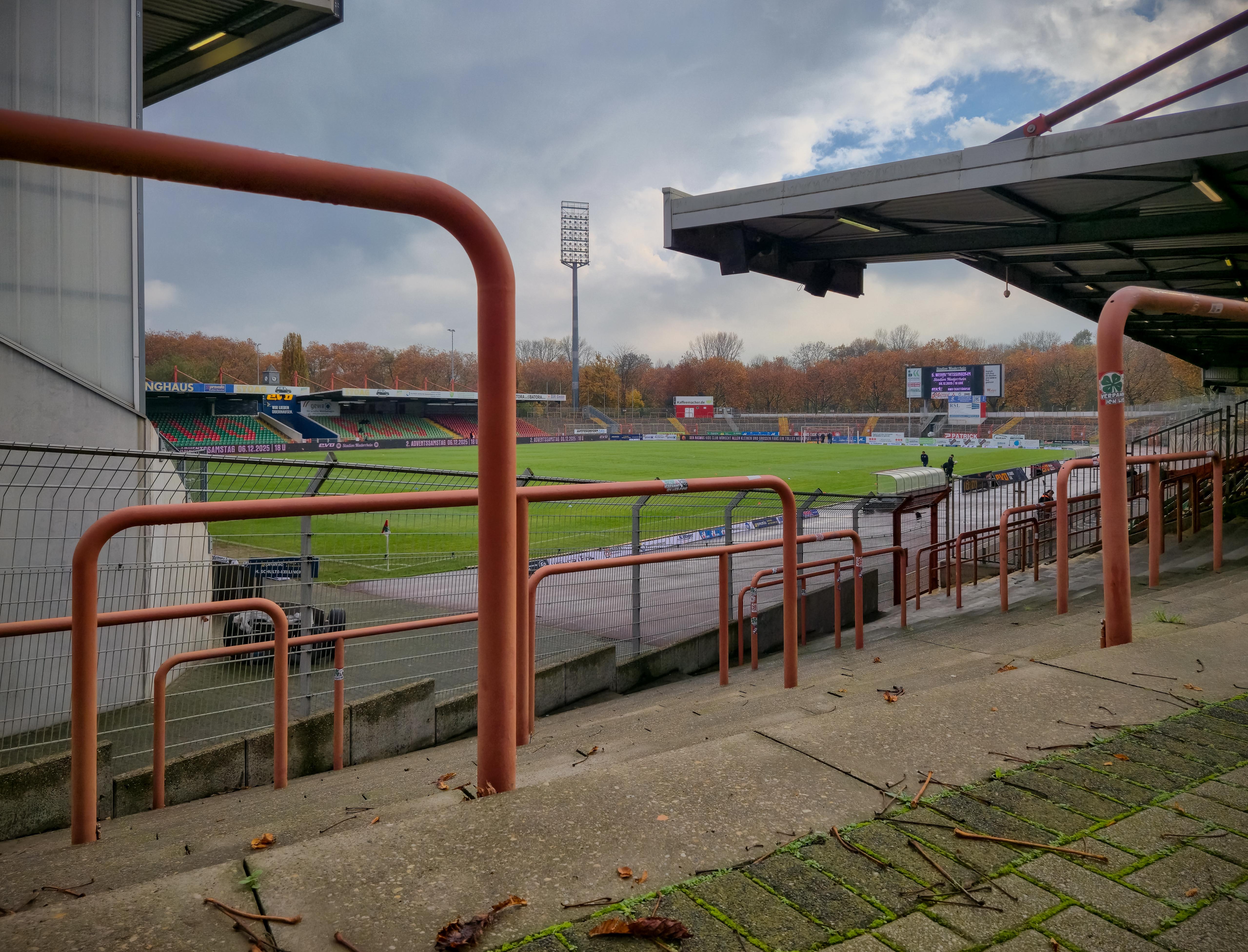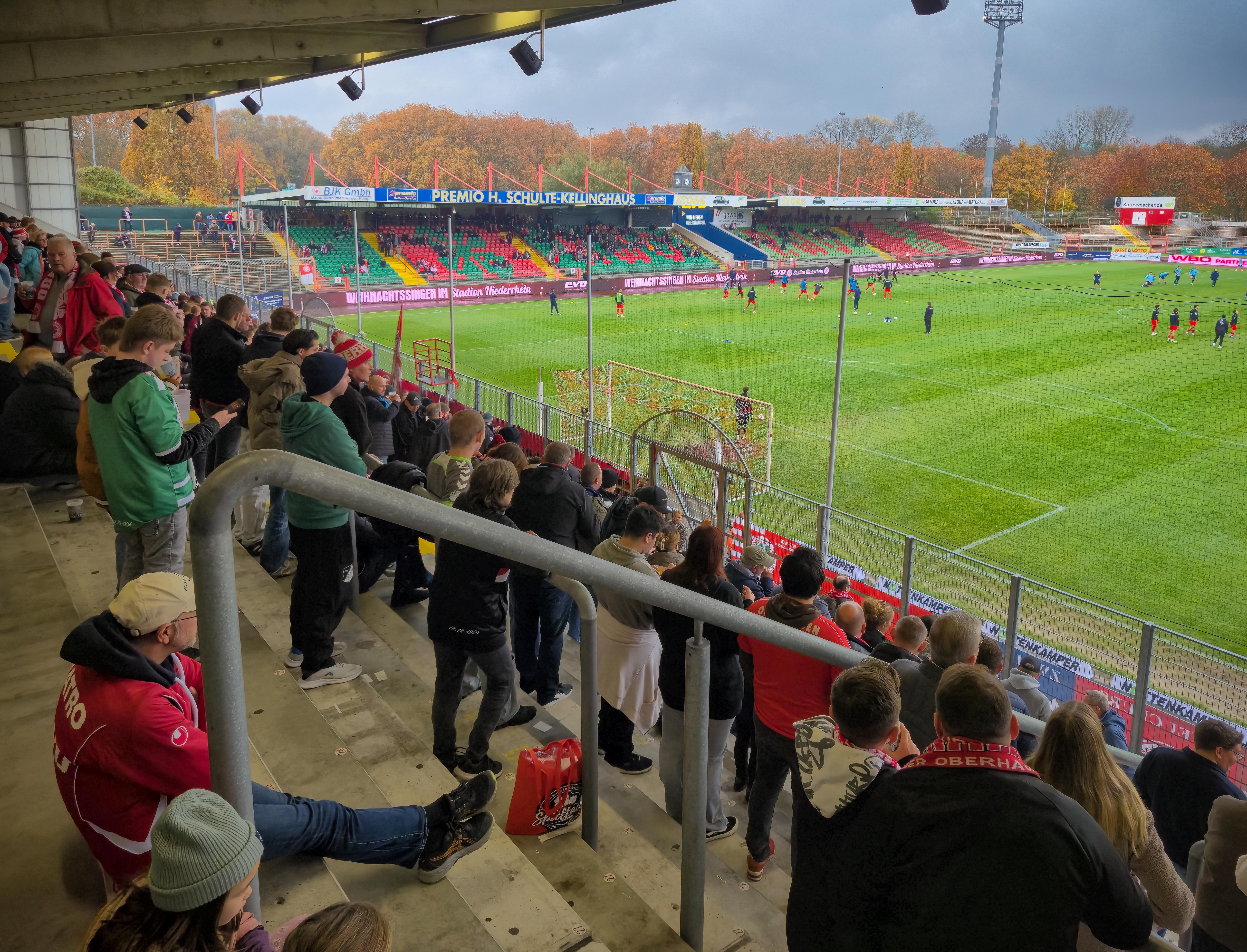 Niederrhein Stadion - Rot-Weiß OberhausenJe ziet hem al vanaf de snelweg. Die lichtmast. Een vuurtoren van beton die je niet loslaat. Alsof hij zegt: “Kom, hier wordt nog gevoetbald zoals vroeger.” En dus kom je. Want wie een lichtmast ziet, moet hem volgen.