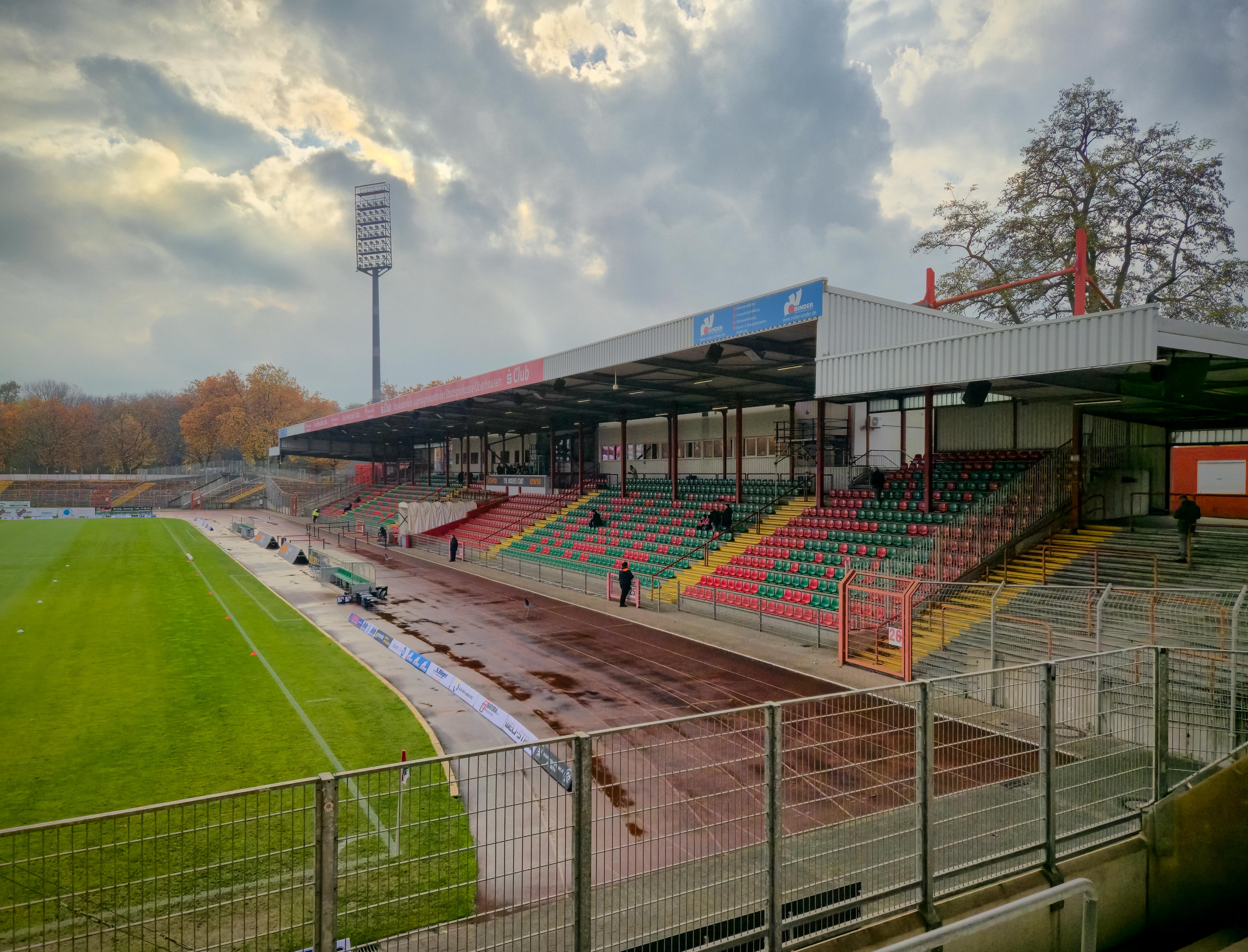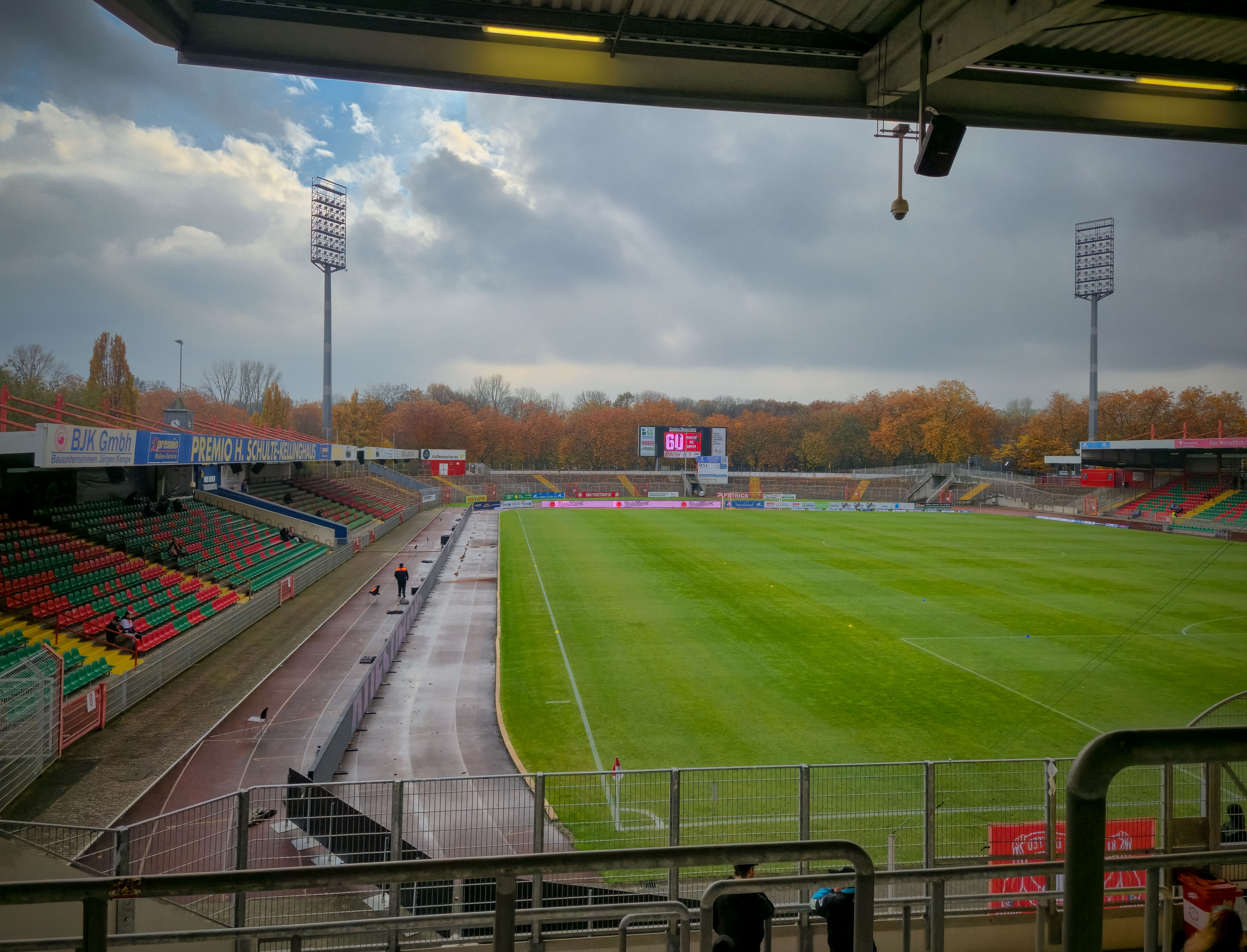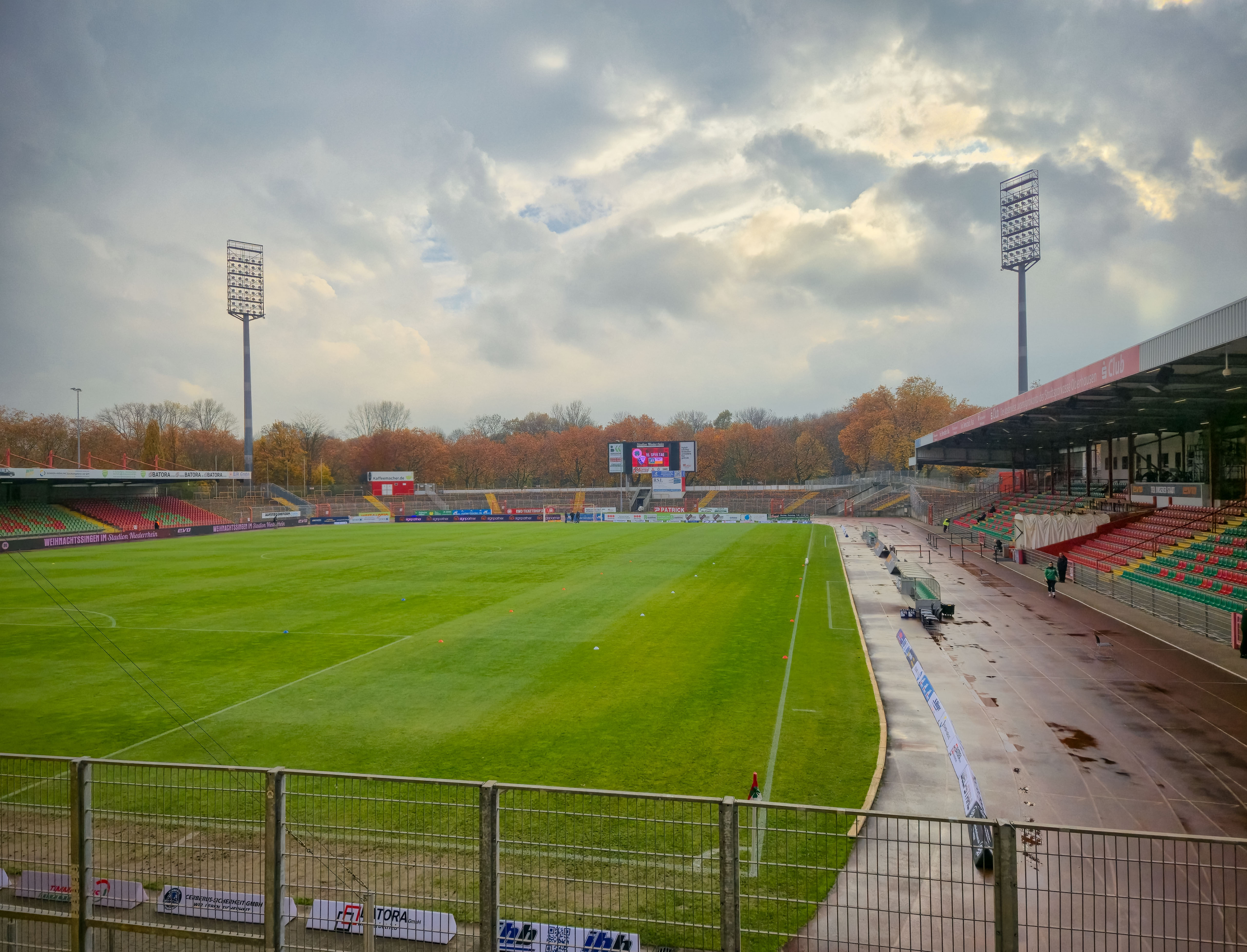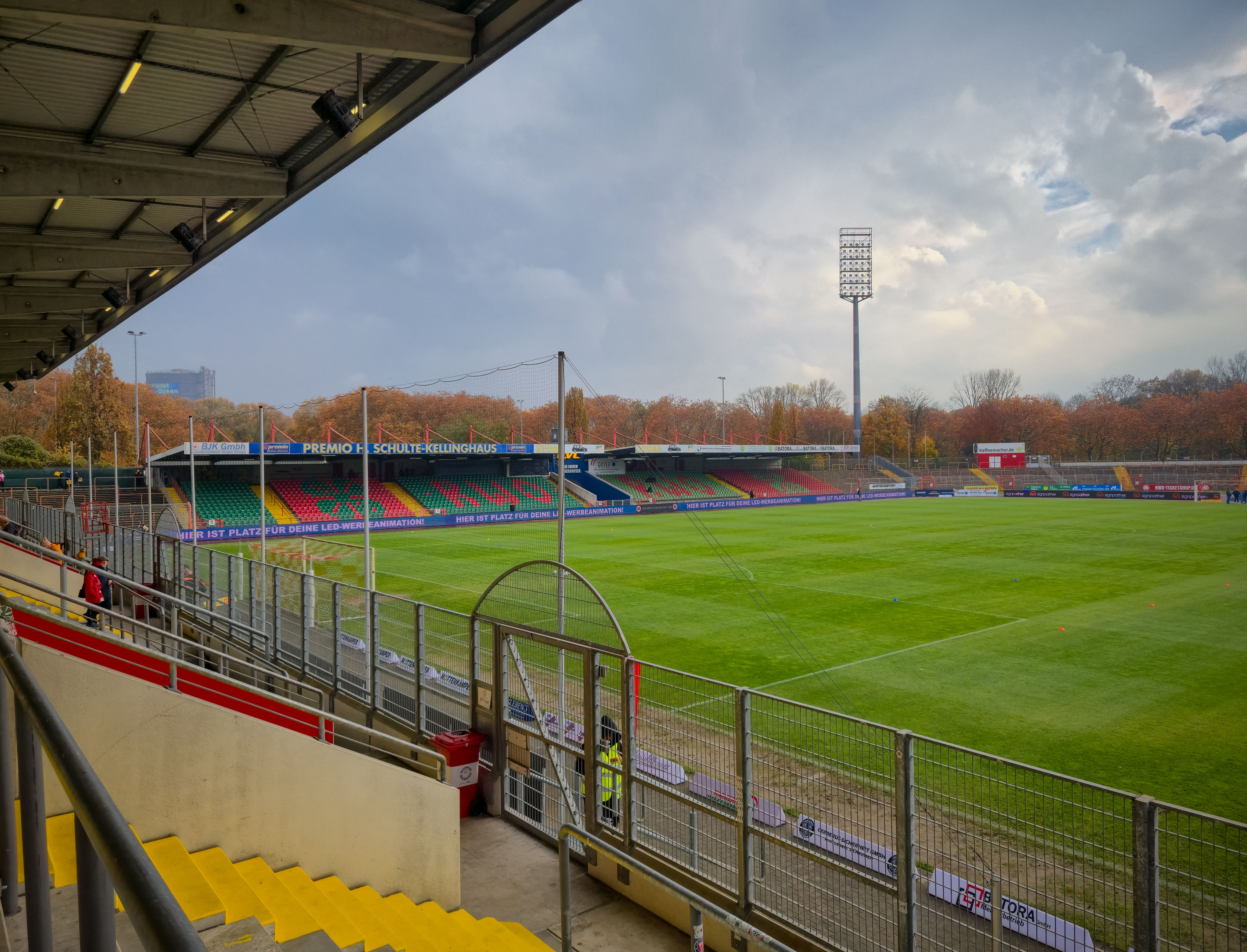 Niederrhein Stadion - Rot-Weiß OberhausenJe ziet hem al vanaf de snelweg. Die lichtmast. Een vuurtoren van beton die je niet loslaat. Alsof hij zegt: “Kom, hier wordt nog gevoetbald zoals vroeger.” En dus kom je. Want wie een lichtmast ziet, moet hem volgen.
