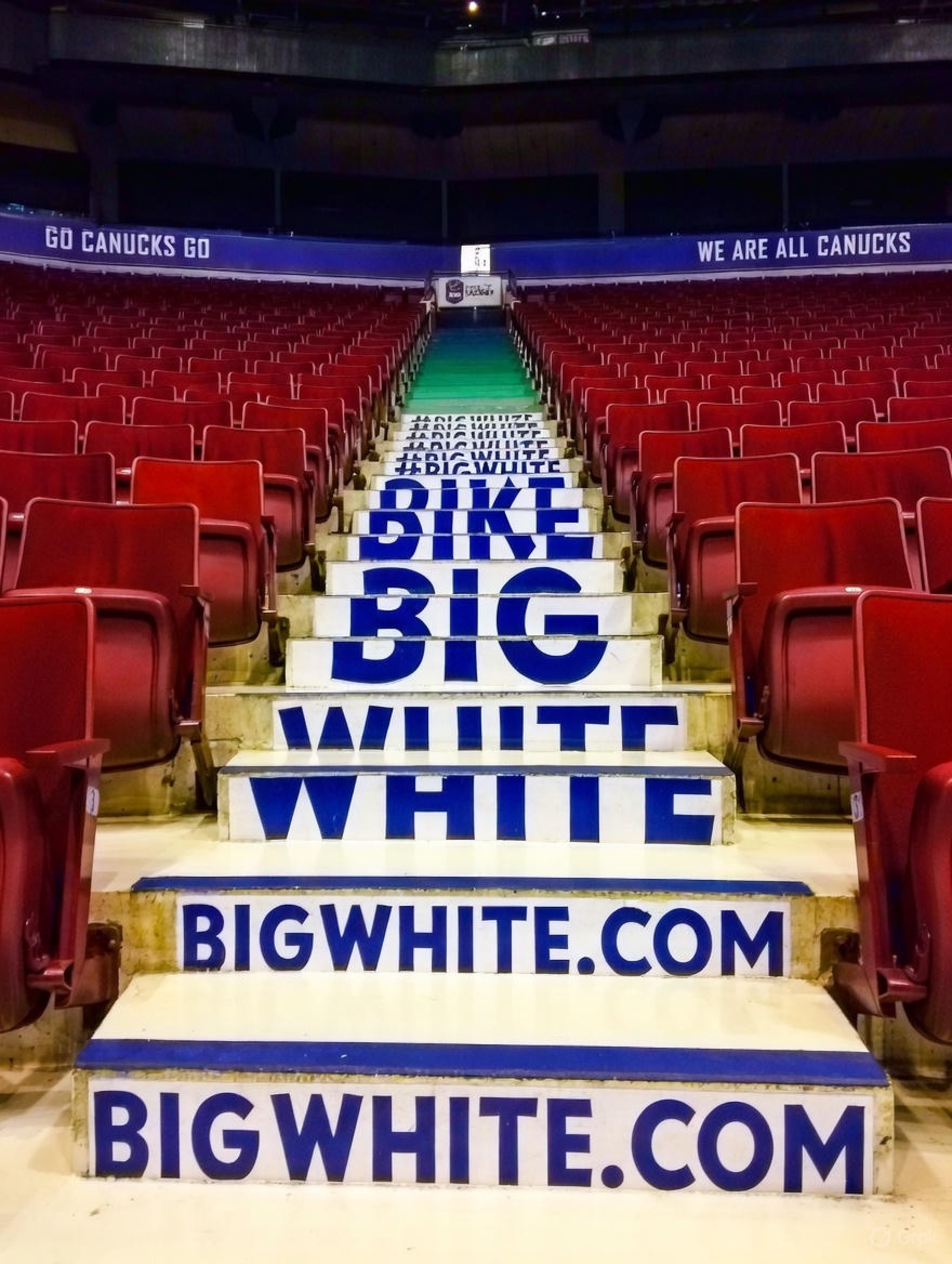 Om de hoek van BC Place ligt Rogers Arena, of zoals het destijds heette: General Motors Place. Omdat mijn reisgenoot wel wat heeft met ijshockey, en we zijn er nu toch, besloten we ook een deurtje verder te kijken. Ook dit stadion speelde een cruciale rol tijdens de Winterspelen van 2010. Tijdens die Spelen droeg het de tijdelijke naam Canada Hockey Place, omdat IOC-regels verbieden dat olympische venues naar commerciële sponsors worden vernoemd.