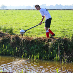 Als de wedstrijd is afgelopen verplaatst het hele circus naar de brug naast het sportveld, klaar voor het speciale douchen. In optocht rent het 1ste elftal van VV Gersloot naar de sloot en duikt daar, onder aanmoediging van Houtingehage 3 en de rest van het dorp, het water in. Het hoofdveld wordt intussen alweer speelklaar gemaakt voor de volgende wedstrijd…