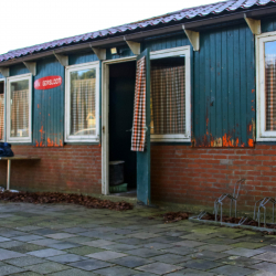 Toch leek het eerste gezicht te zeggen: “Wéér een camera!” Toch werd ik direct gastvrij ontvangen in de kantine wat niet meer is dan een houten keet. Aan de muur aan de straatzijde staat een goed gevulde prijzenkast trots te zijn, de andere zijde heeft zicht op het hoofdveld. In een kleine hoek staat een toonbank met hierop wat snoep en koffie, een meter of twee daarachter, tegen de muur is een plank geplaatst waarop een grote pan met vermoedelijk gehaktballen de keuken speelt. Een andere gebouw, niet veel groter dan de eerder genoemde keet, doet dienst als kleedkamer. Om de teams enige privacy te geven zijn voor de ramen gordijnen die voor het laatst in de Wehkampgids van 1973 hebben gestaan opgehangen.