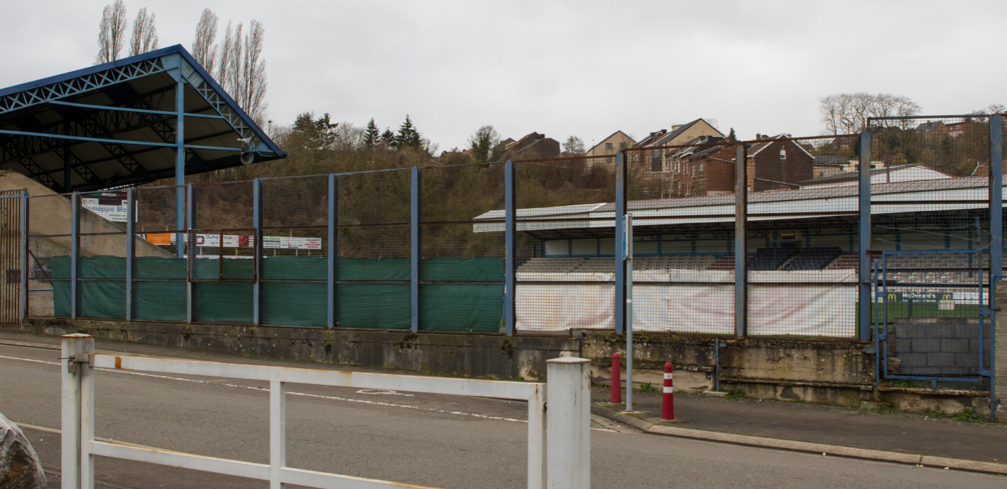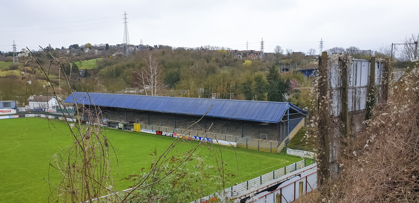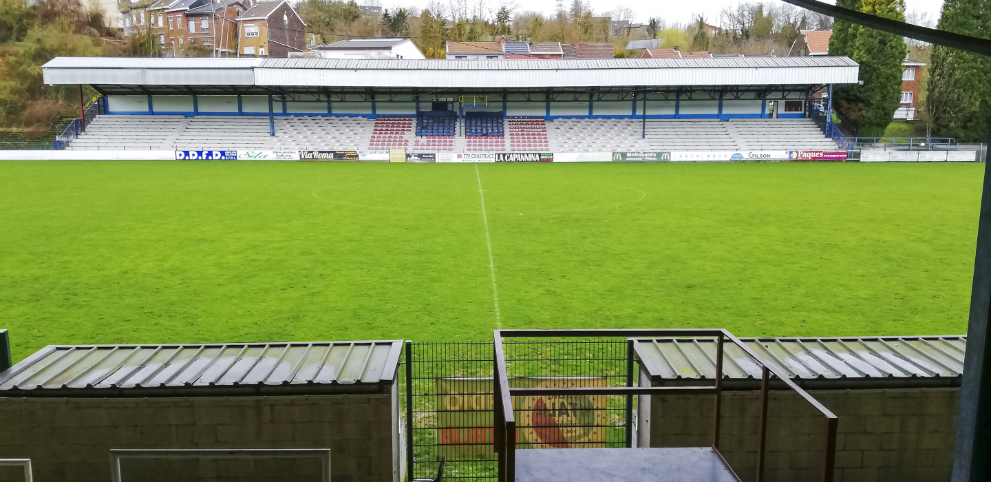 Een paar uur later stonden we bij het eerste stadion van de dag: Stade de Buraufosse. Wat een schoonheid, waarin alles klopt. Een stadion midden in een woonwijk, elektriciteitsdraden zichtbaar, het treinspoor vlakbij. Het ligt letterlijk onder de rook van de zware industrie, maar tegelijk verscholen tussen een heuvel en bomen. Een deel van de heuvel is uitgegraven en biedt plaats aan het veld, een ander deel is gebruikt voor de tribunes. Vooral staanplaatsen, met aan de lange zijden daken die wel eens van asbest zouden kunnen zijn. Verweerde reclameborden langs het veld, en achter het clubhuis de herkenbare walm van pis. Vanachter de hekken probeerden we een goed beeld te krijgen van dit stadion, dat hier sinds 1960 staat.
