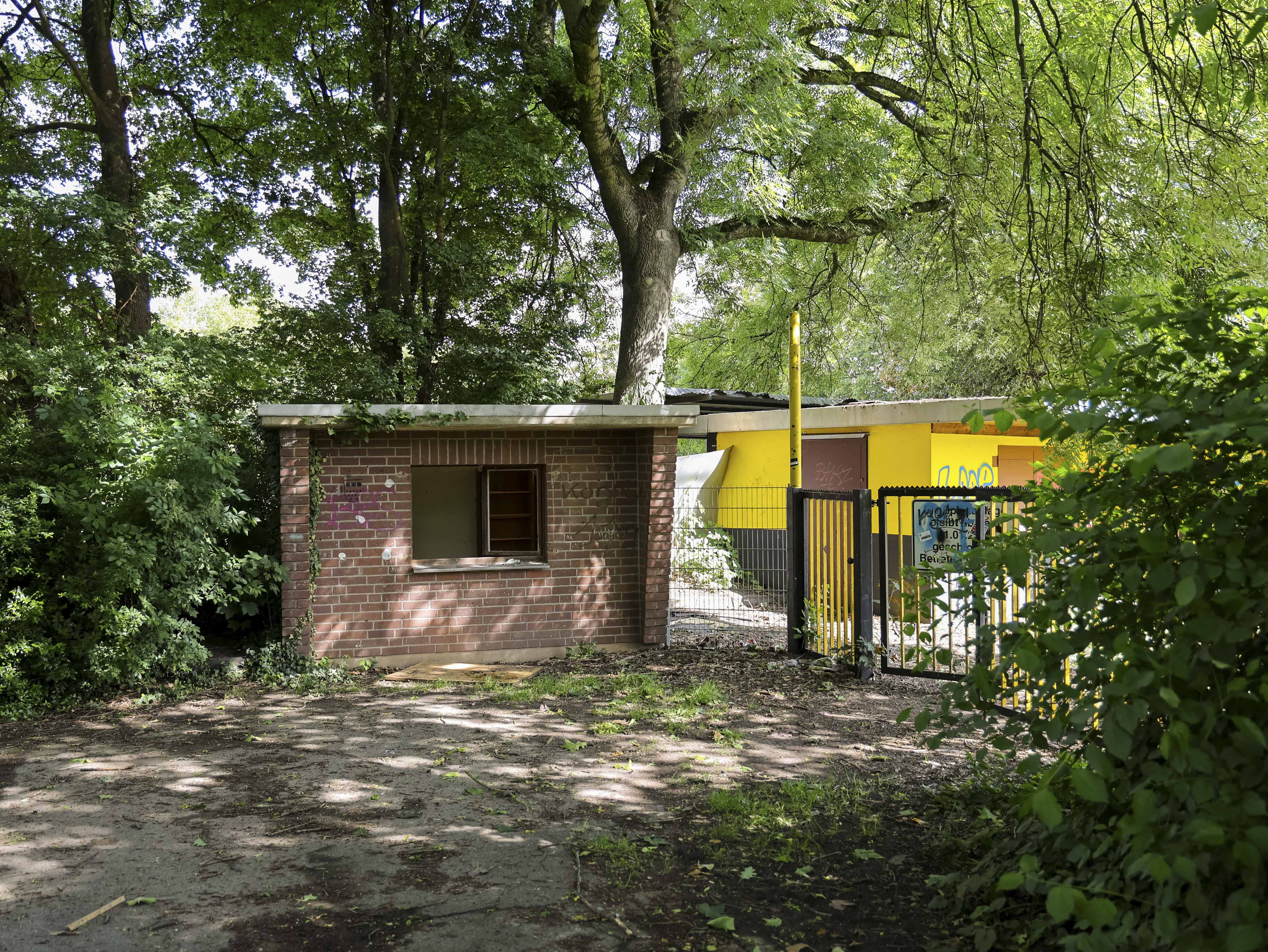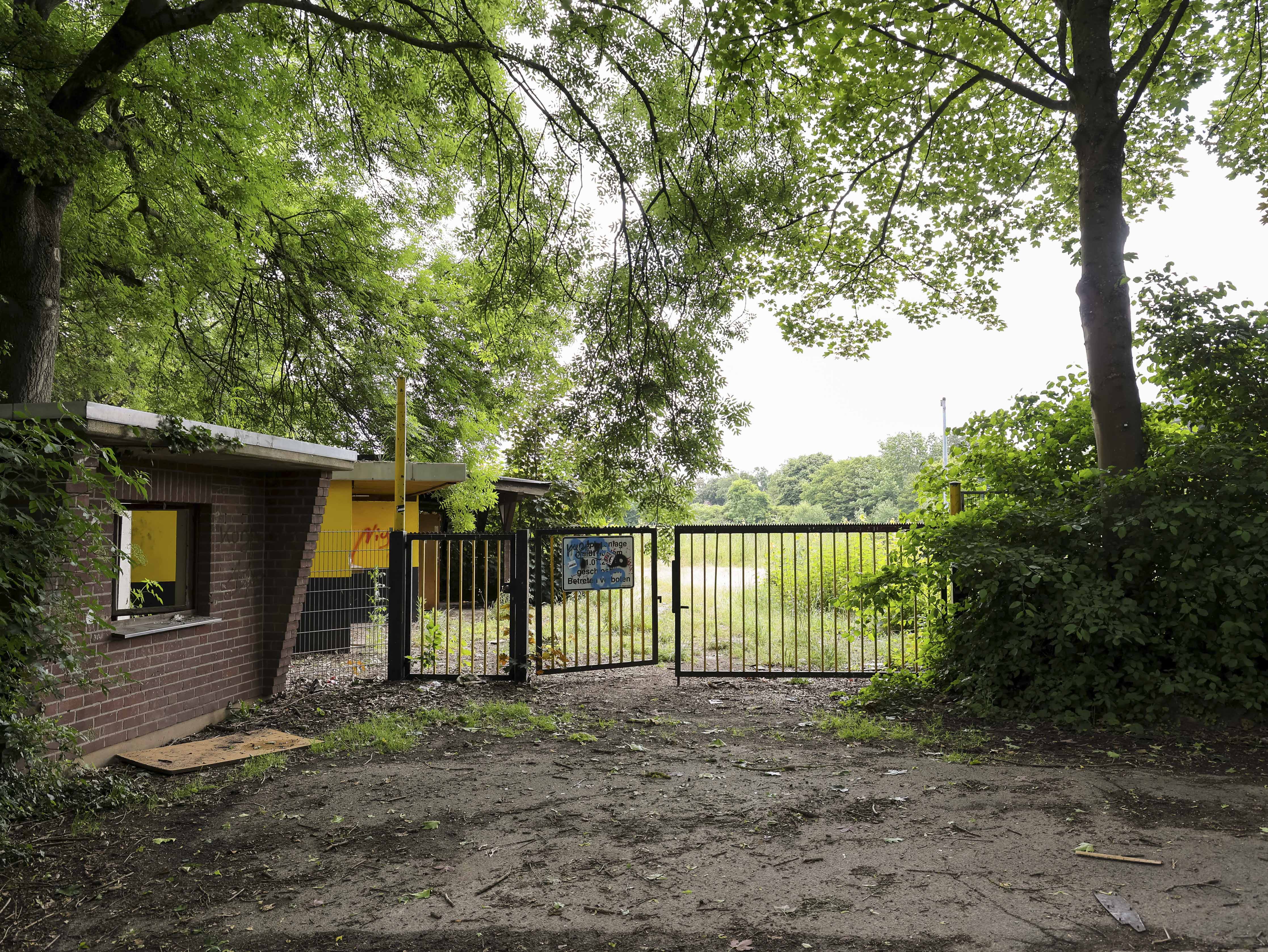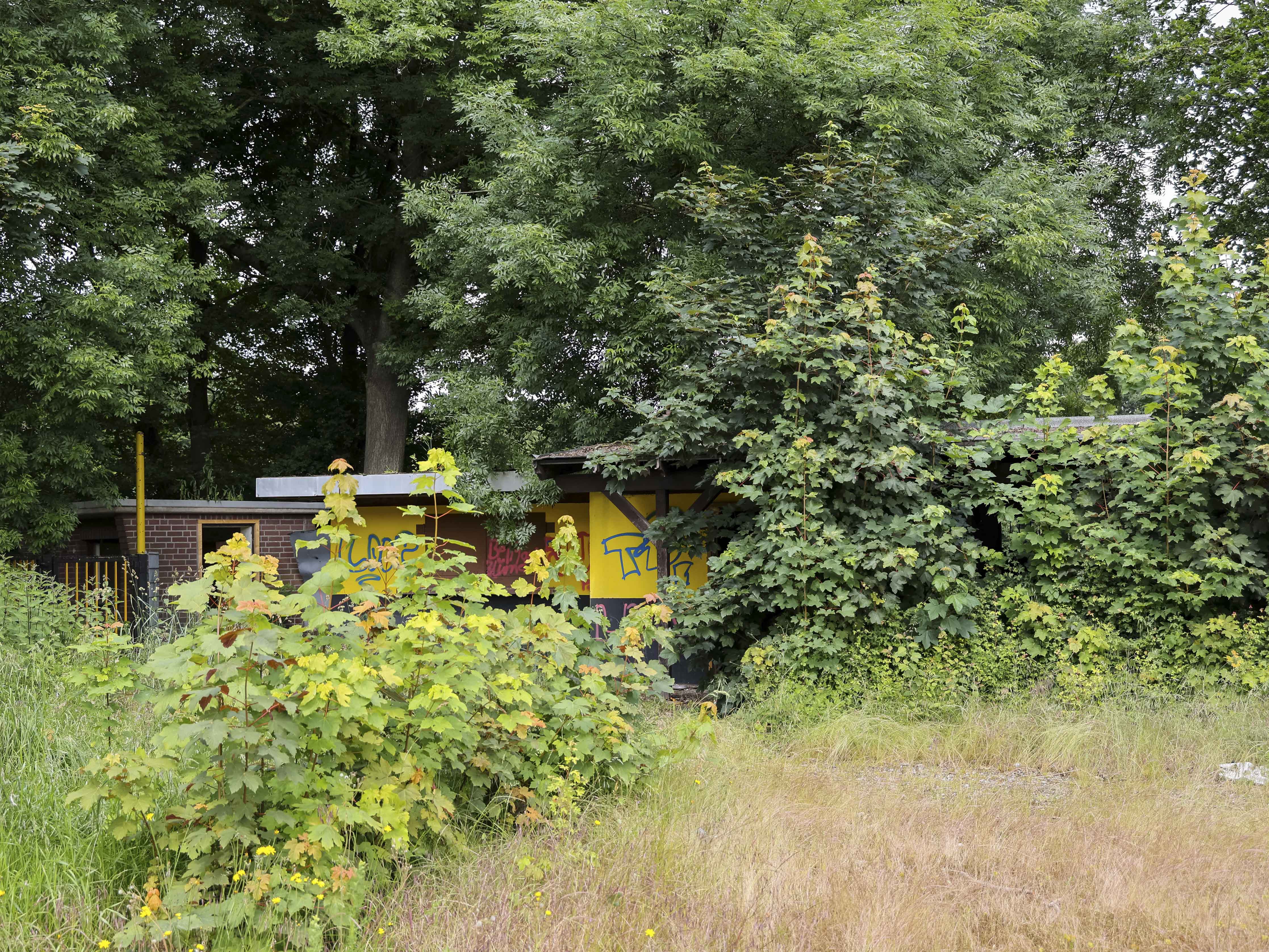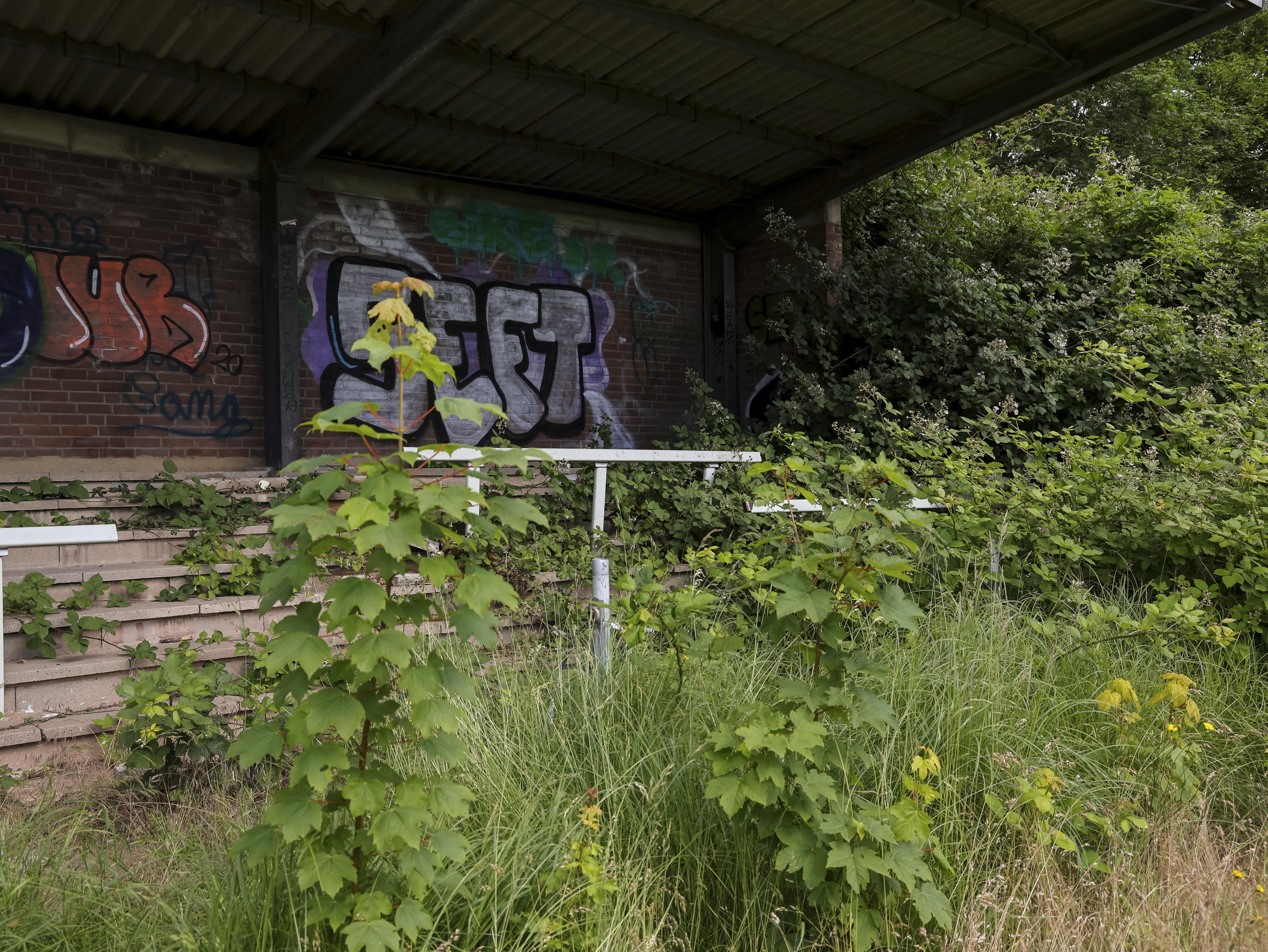 Naast de ticketbox staat het clubgebouw. Geel geschilderd, of wat daar nog van over is. Op het dak staat een URL: www.jugend-fussball-oberaussem.de. Een digitale grafsteen. De club leeft nog ergens, diep in het geheugen van het internet. Binnen hangt de deur scheef in haar hengsels. Het plafond ligt op de grond, in lange houten stroken. Een massieve kastenwand staat er nog. Graffiti overal. Gebroken ramen kijken uit op wat ooit het spelersgebied was. Dit waren de kleedkamers. Hier trokken spelers hun shirts aan voor wedstrijden in de Kreisliga D. Hier werden op dinsdagavonden trainingen besproken. Hier stonden jeugdteams op zaterdag te wachten op hun beurt. Peptalks, teleurstellingen, kleine overwinningen. Nu is er alleen puin. En stilte.