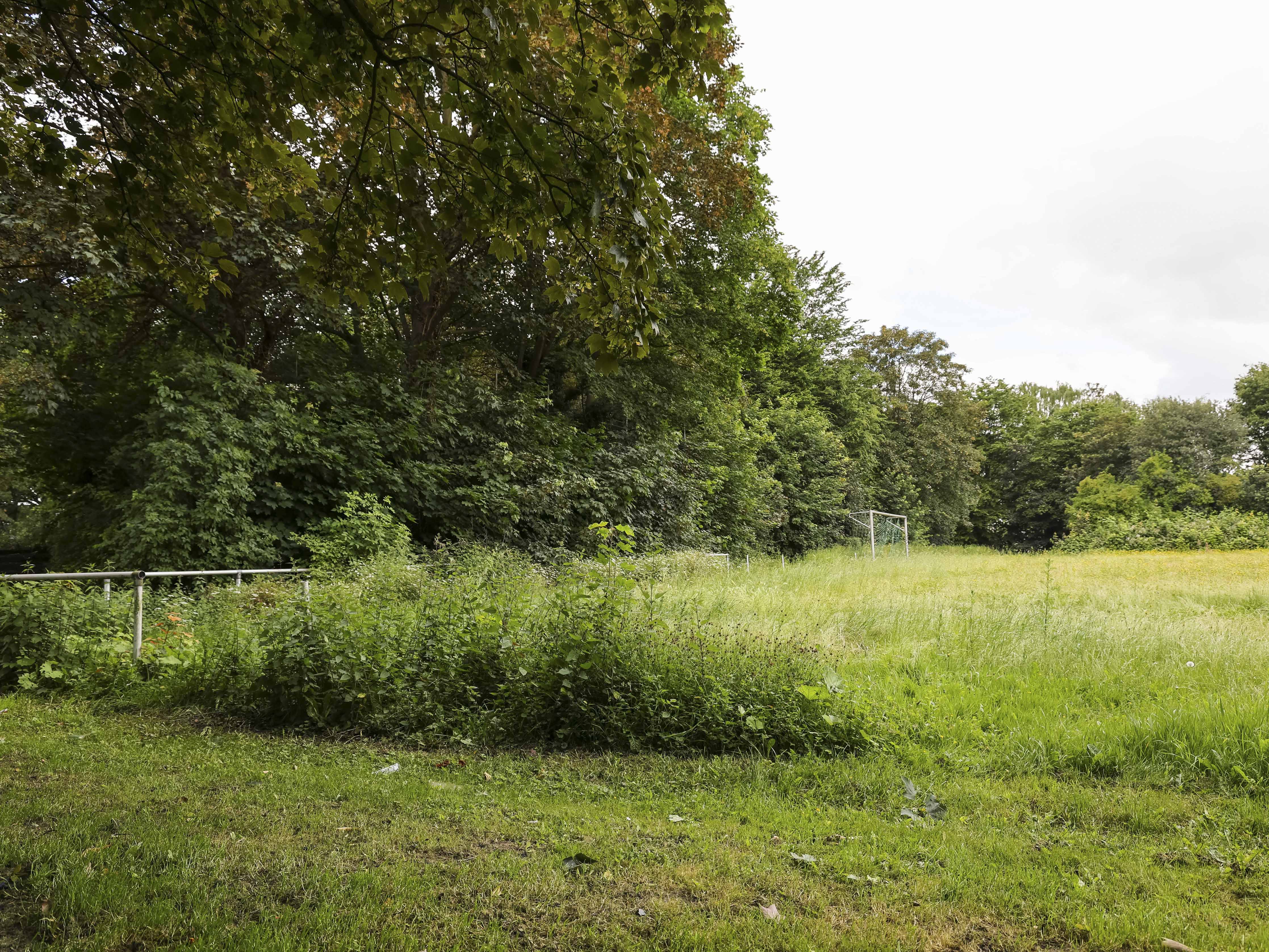 De parkeerplaats is leeg. Geen auto’s, geen fietsen tegen een hek, geen ouders die kinderen afzetten voor training. Niemand die haastig naar binnen loopt met papieren onder de arm. Alleen stilte. En ergens tussen de bomen, verscholen achter een dicht gordijn van groen, ligt wat ooit het Werner Lehmann Stadion was. Thuishaven van SpVgg Oberaußem-Fortuna. Een club die in 2019, na precies honderd jaar voetbal, ophield te bestaan.