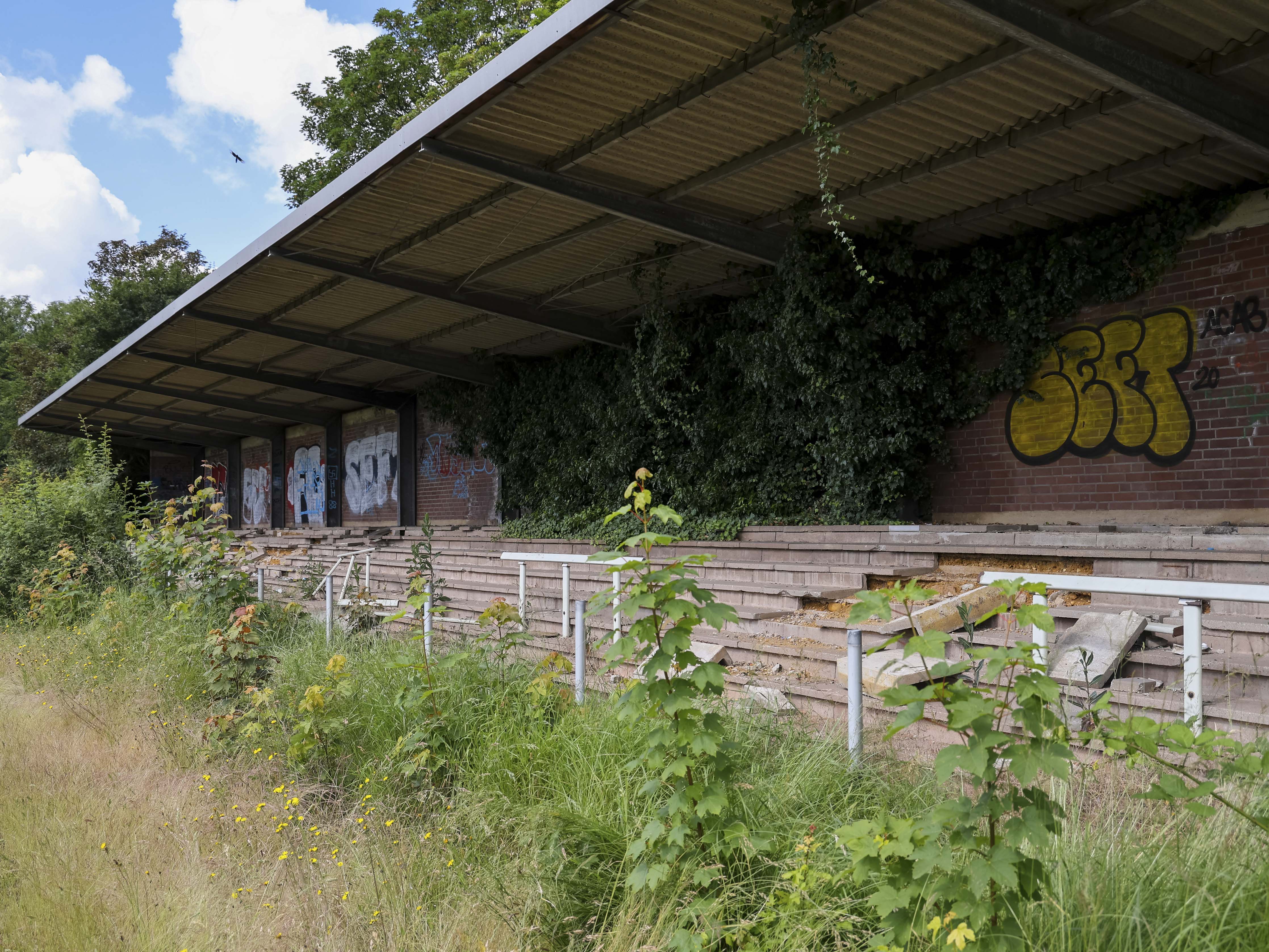 Ik sta bij de hoofdtribune en kijk uit over het overwoekerde veld. Deze plek had zoveel kunnen worden. Een park. Woningen. Een speeltuin. Een volkstuin. Een nieuwe bestemming.
