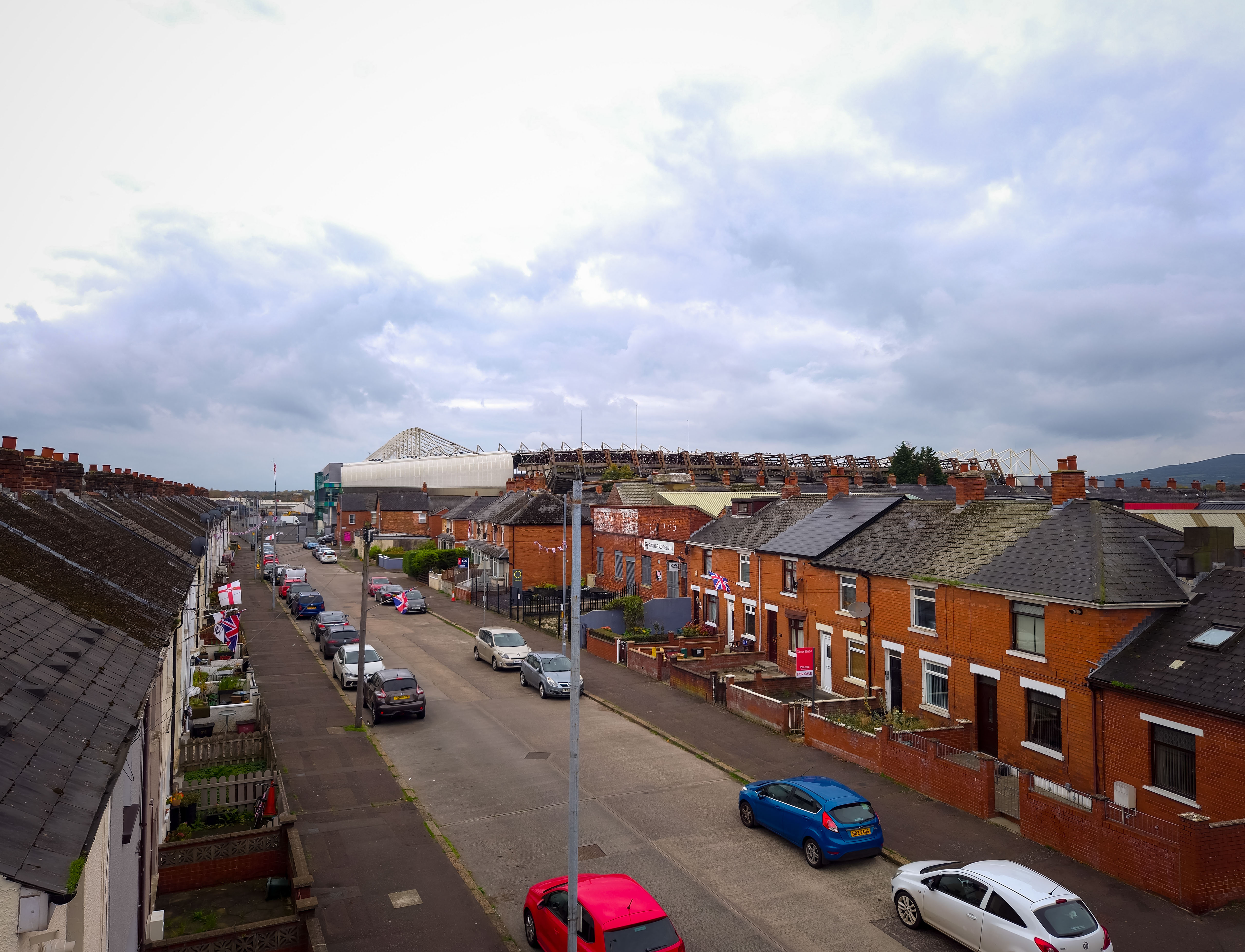 De ochtend in Belfast begint niet met koffie, maar met gras. Het is nog vroeg, de lucht hangt zwaar en grijs boven de stad, en de straten rond Windsor Park zijn leeg. Niet omdat de stad vergeten is dat hier duizenden mensen samenkomen, maar omdat Linfield vandaag uit speelt. Geen matchday, geen drukte, alleen stilte. En juist die stilte maakt het stadion groter dan ooit.